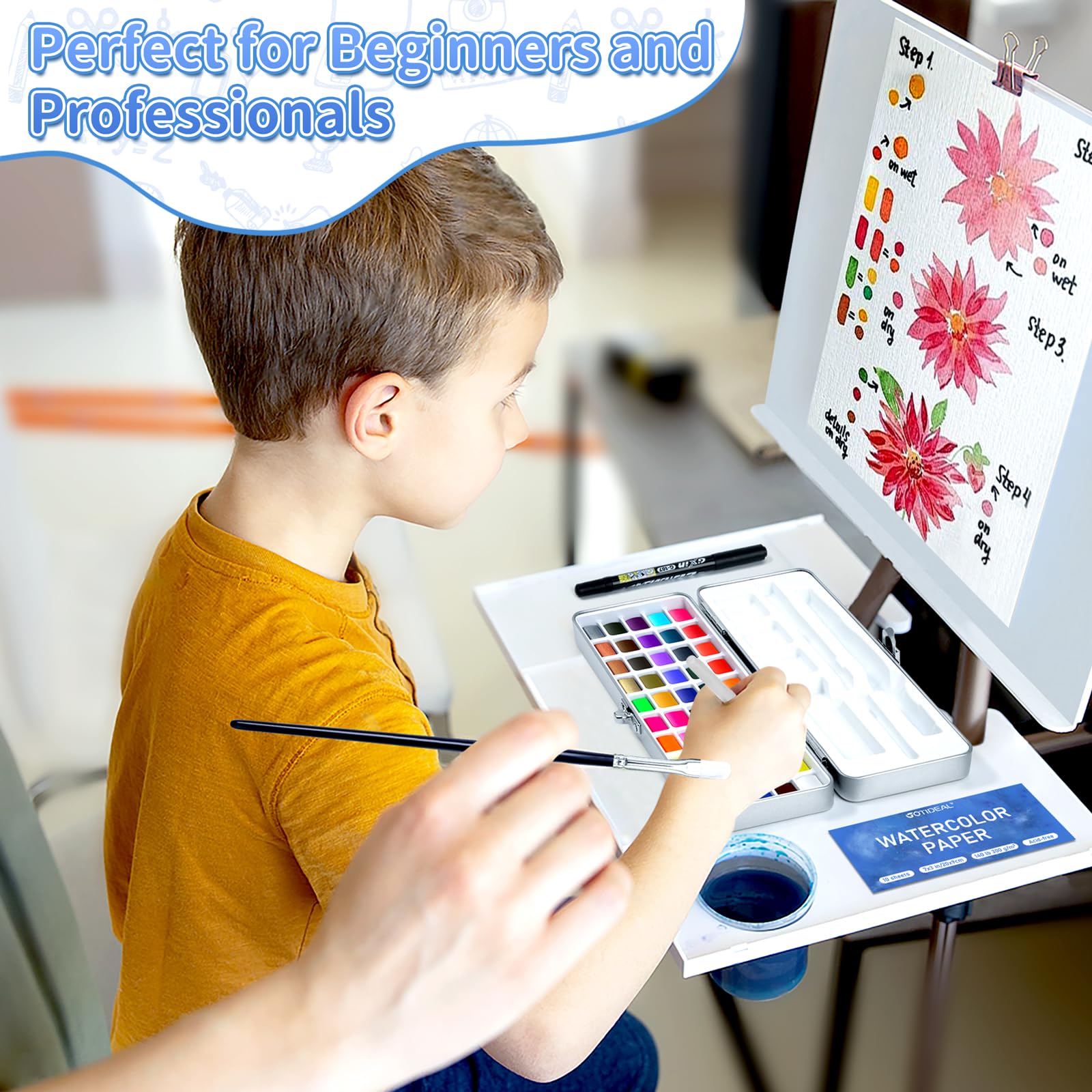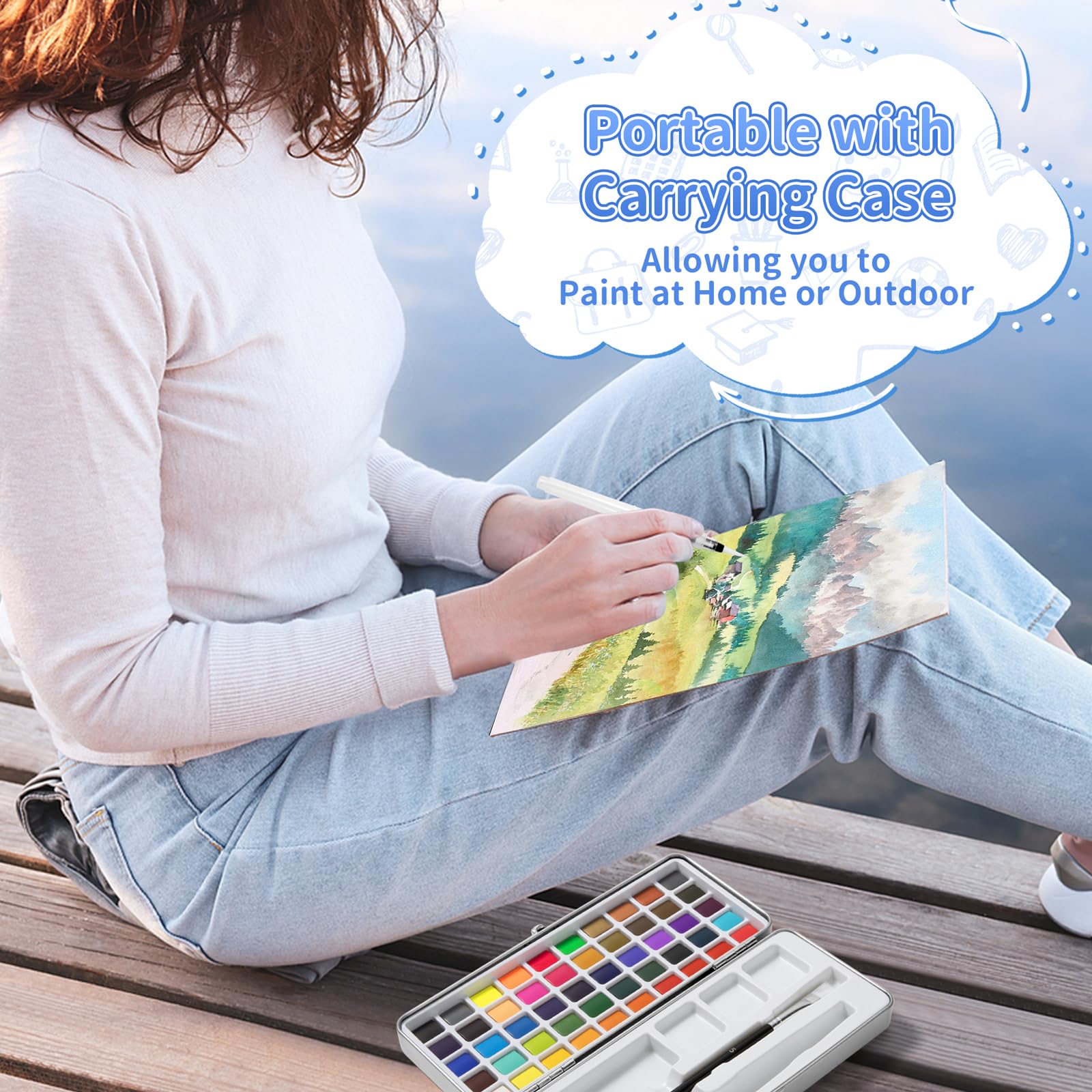 GOTIDEAL Watercolor Paint Set, 50 Vivid Colors with Portable Carrying Case, Perfect Travel Water Colors Paint Adult Set for Artists,Beginners,Professionals