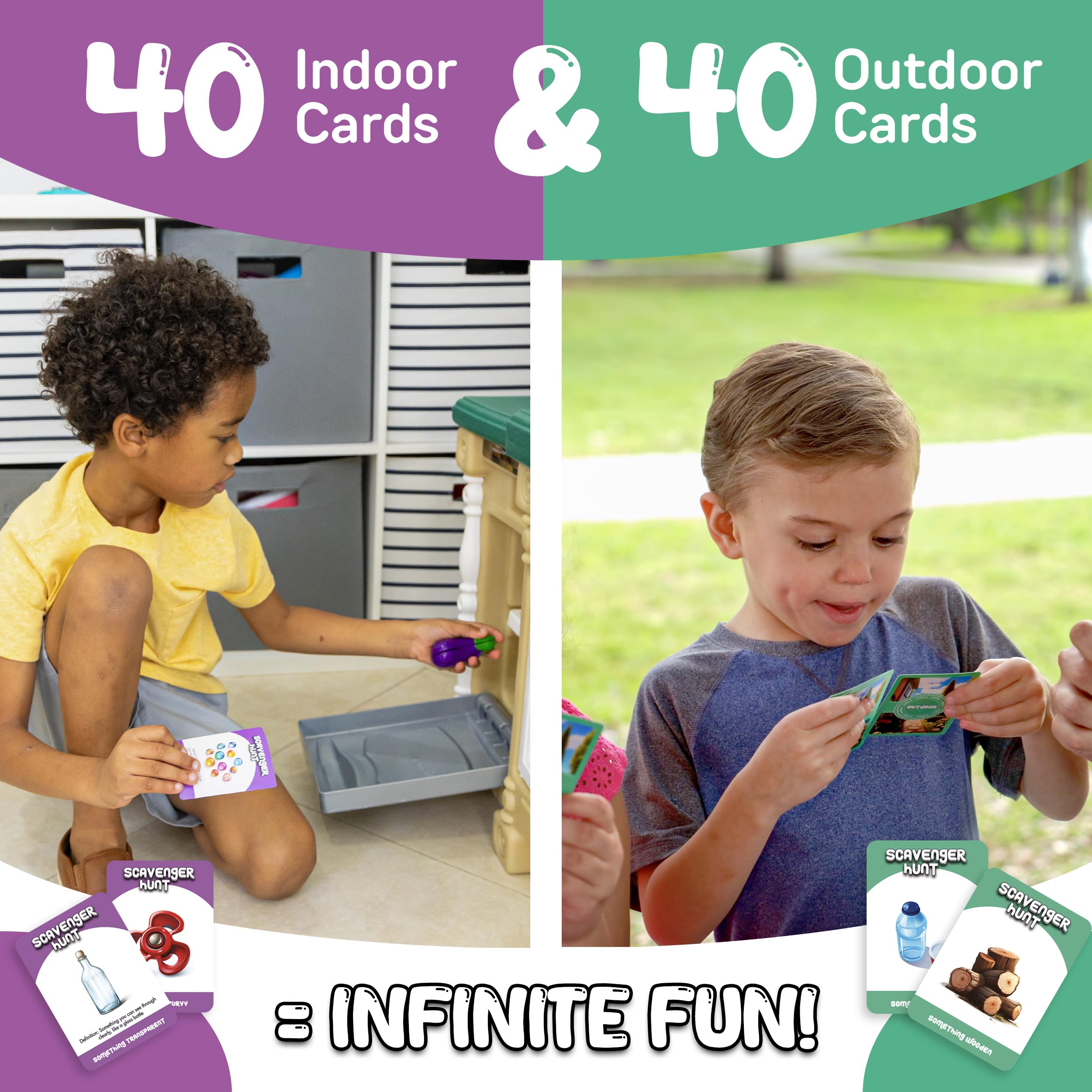 SCREEN-FREE FAMILY FUN – Ignite joy with our Active Kids Scavenger Hunt! This kids games 4-6 offers 40 indoor and 40 outdoor clues, making it a standout among party games for kids 6-8 and a delightful addition to active game nights.