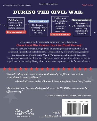 From periscopes to homemade paper, uniforms to telegraphs, Great Civil War Projects You Can Build Yourself explores the Civil War era through hands-on building projects and activities using common household and craft store items. Detailed step-by-step instructions, diagrams, and templates for creating 25 Civil War projects, combined with historical background, facts and anecdotes, and biographies and trivia, give kids a hands-on way to experience the fascinating history of one of the most important eras in American history.