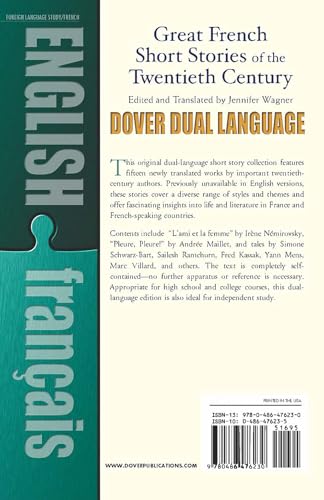 This dual-language book enhances French language skills and literary comprehension through exposure to 20th-century short stories.