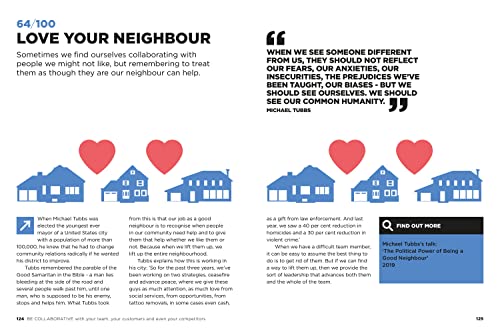 This unofficial compilation reviews the 100 best TED talks about leadership from great minds worldwide. With quirky graphics and memorable quotes, Great TED Talks: Leadership will shift your thinking, open your mind to new perspectives, and ignite your passion for people management. Learn how to be strategic and visionary from masters like Simon Sinek and Carol Dweck. Be open to new ways of thinking, and discover what world leaders do when they struggle to lead effectively. Find inspiration in unusual places, and new ways to collaborate with your team. You probably know that authenticity is key to your business, and here you can find out how America Ferrera used her unique personal brand to overcome those who told her she couldn’t make it and succeed on her own terms. There are thousands of TED talks to navigate–this book curates the most inspiring and provides a commentary on the top 100 ways to boost your leadership skills, find new strategies, and overcome your fears to achieve your full potential.