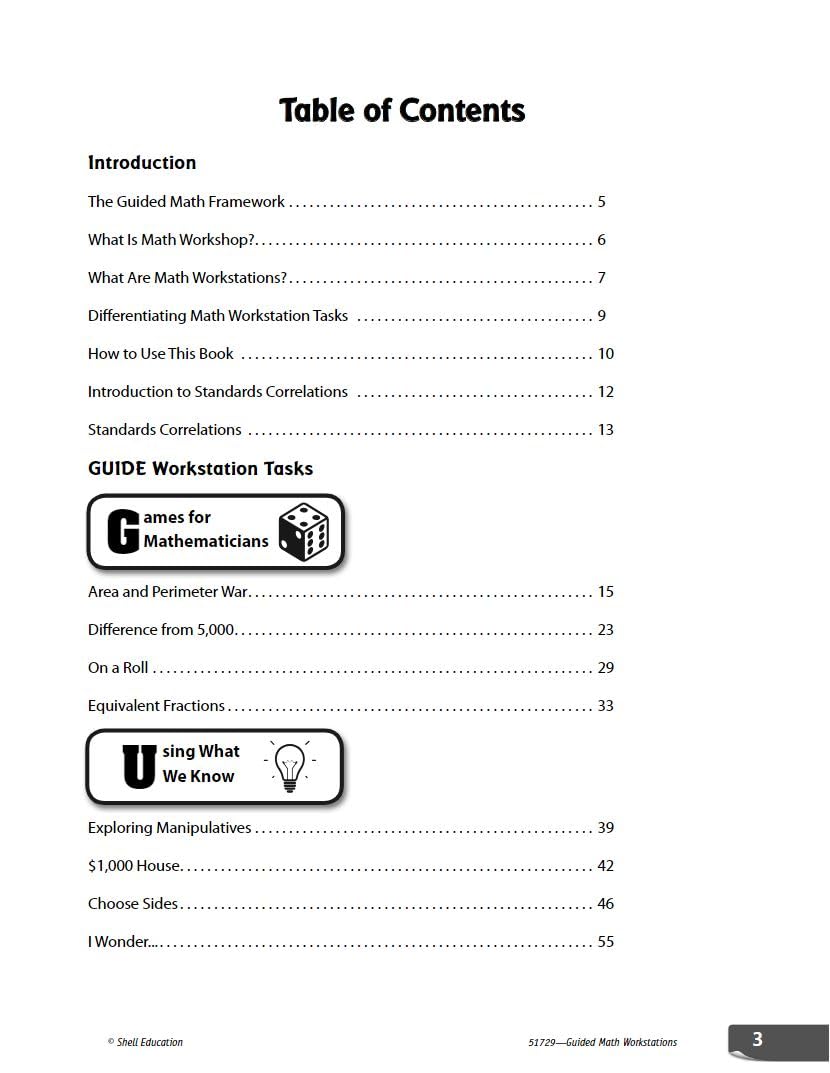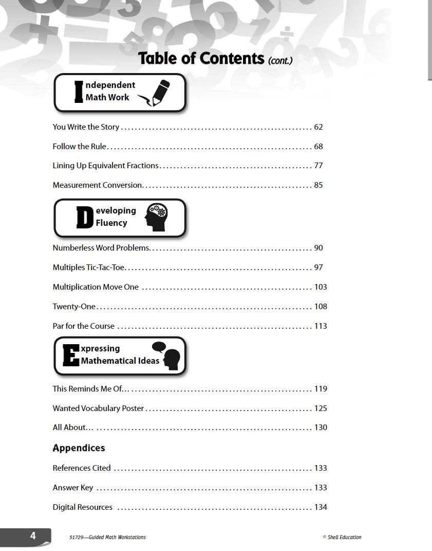 Address and target your students’ varied learning needs with Guided Math Workstations. Guided Math Workstations help provide a carefully planned numeracy-rich environment where students are challenged to not just do math, but to become mathematicians. When utilizing guided math workstations, sometimes known as a math workshop, teachers will be able to successfully target the specific needs of learners with small-group lessons as students work independently on tasks. Guided Math Workstations for Grades 3-5 was created by teachers for teachers and students by the experts at Shell Education. It provides detailed instructions on how to successfully implement guided math workshops into grade 3-5 classrooms, and contains detailed instructions for all the steps from set up to planning and managing existing workstations. Each workstation task includes: an overview of the lesson, materials, objective, procedure, and differentiation tactics; a Student Task card with directions and a materials list for the task to help with implementation and organization; a Talking Points card with math vocabulary words and sentence stems to encourage mathematical discourse; and additional resources for each task.