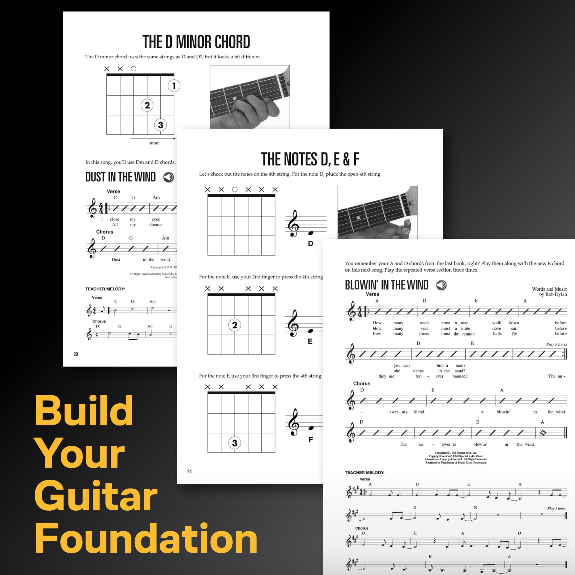A Fun and Engaging Guitar Method for Kids * Designed as a continuation of Book 1, this guitar method helps young beginners develop their skills with easy-to-follow lessons and step-by-step instructions. The structured format ensures kids stay engaged while learning both acoustic and electric guitar. * * Interactive Play-Along with Online Audio * This book includes access to over 30 downloadable or streamable audio tracks, allowing kids to hear and play along with full-band recordings. The simple page layouts help maintain focus on one concept at a time, making learning efficient and fun. * * Perfect for Home or Classroom Learning * Whether learning with a teacher, parent, or independently, this book is designed for kids with or without prior musical experience. Popular songs make practice enjoyable while building essential guitar techniques. * * Songs Included * Blowin’ in the Wind * Deep in the Heart of Texas * Dust in the Wind * Eight Days a Week * Fever * Fields of Gold * Give Me One Reason * Green Onions * A Horse with No Name * It’s Your Thing * Knockin’ on Heaven’s Door * Let It Go * Oye Como Va * Rock Around the Clock.