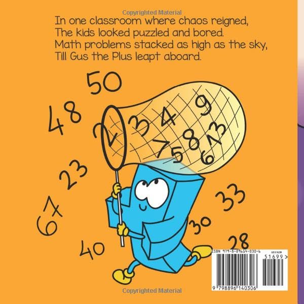 Step into the wacky world of Gus the Plus, the quirkiest math hero you’ve ever met! Gus bursts into a chaotic classroom with glitter, sparkles, and a mission to make addition an adventure. From marbles and candy to dinosaurs and apples, Gus shows kids how adding things together can lead to endless fun–and a few unexpected laughs. Through rhyming verses and silly antics, kids will discover how to solve math problems in a way that’s exciting and easy to understand. With humorous twists, vibrant illustrations, and a touch of magic, Gus the Plus turns addition into a superhero power that every child will want to master! Perfect for ages 4-8, this delightful story blends learning with laughter, making math a favorite subject for little readers everywhere. Gus’s motto? “There’s fun in every sum!”