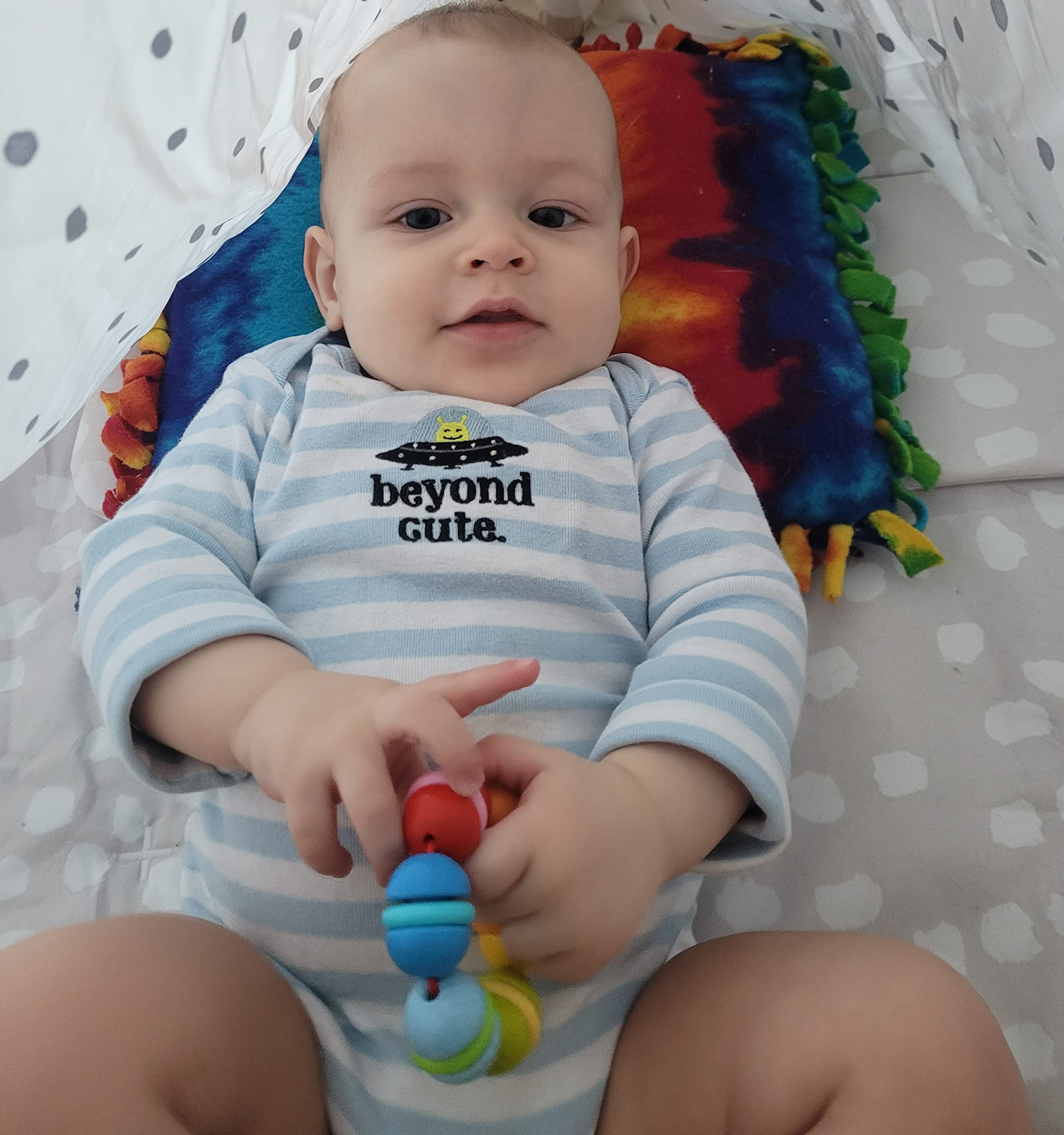 - Clutching toy Clatterit measures approximately 3″ in diameter and is designed specifically for little hands. Recommended for babies ages 6 months and up.
