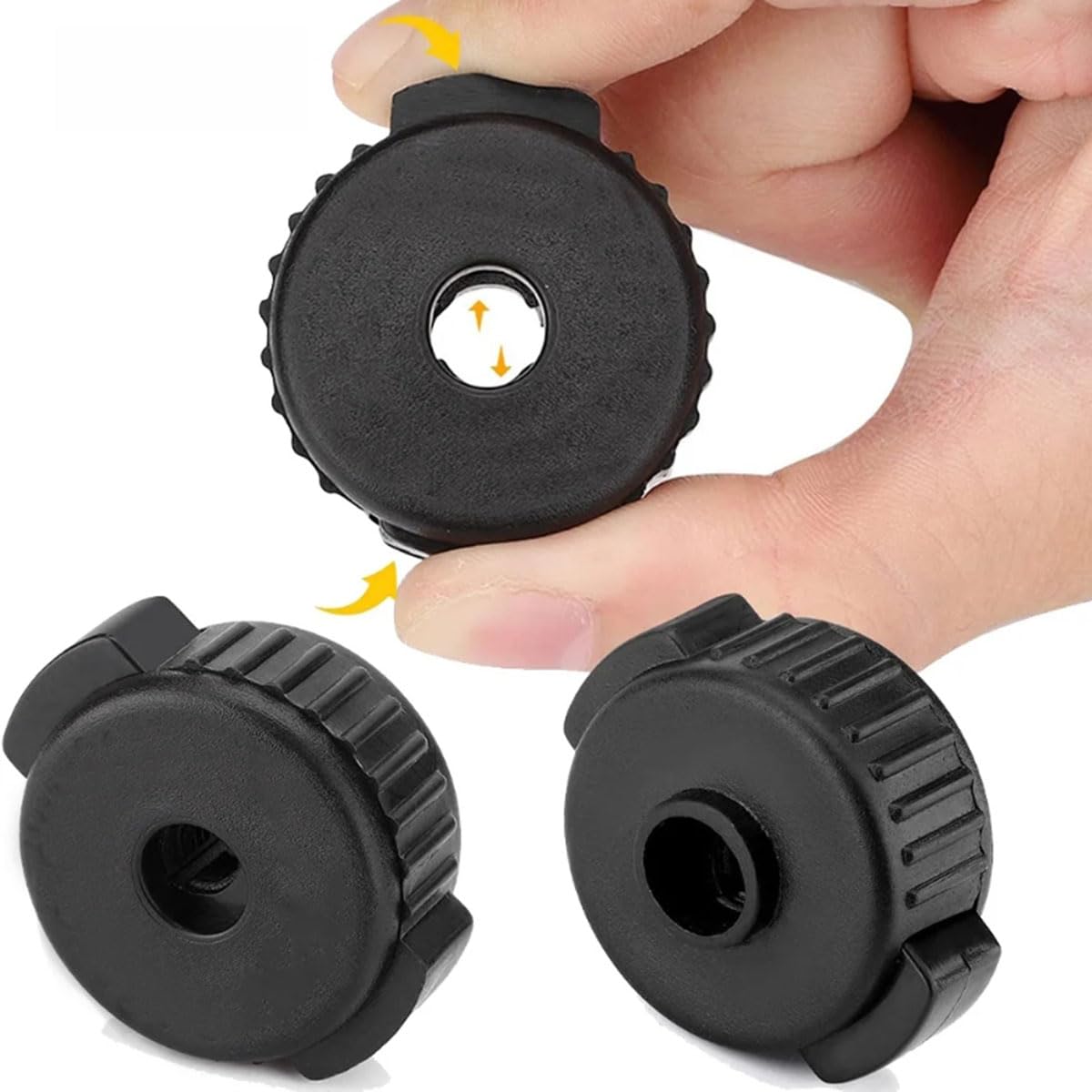 Product name: Plastic cymbal nut Material: Plastic Size: as shown Color: Black Plastic cymbal nut made of high-quality plastic material, it is durable, can cope with more high-quality work, not easy to deformation, damage; A wide range of quick release cymbal nuts are the perfect replacement for drum kits and are superior to traditional cymbal butterfly wing nuts; The quick cymbal nut is easy to install and use, and the ergonomic button design allows the cymbal to be installed or removed in just a few seconds; The cymbal nut provides excellent stability, ensuring that it will not fly or fall off when playing the drum, and can firmly lock the screw rod of the cymbal; The plastic cymbal nut as a whole is made of solid material, high quality, meticulous and fine workmanship, which helps to avoid rattle and contact noise during recording. Products include: Plastic cymbal nuts *4PCS PS:1, the size and color are manual measurement and shooting, if there is any error, please forgive. 2, please purchase according to the specific size model.