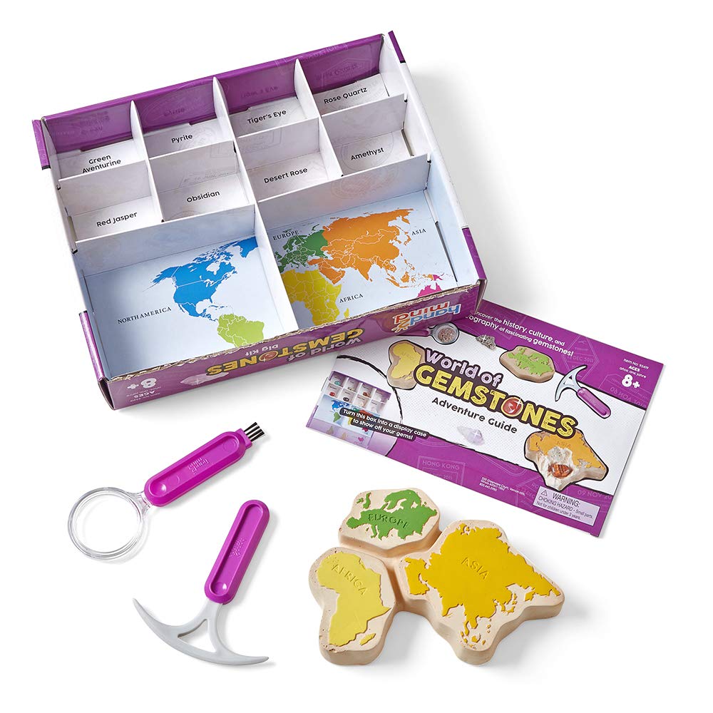 - GEM DIGGING KIT FOR KIDS: Using our World of Gemstones science lab kit, children can learn about world culture, how gemstones are used in the world and more!