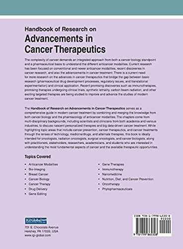 “This book disseminates the recent promising discoveries such as immunotherapies, promising therapies undergoing clinical trial, synthetic lethality, carbon beam radiation, and other exciting targeted therapies based on rigorous evidence to benefit trainees, oncologists, radiation oncologists, surgical oncologists, scientific community, and also to anyone who is merely interested in to know more about cancer biology and available therapies”–