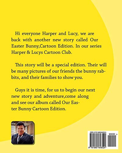 Hi everyone Harper and Lucy, we are creating a new Easter Bunny Cartoon Club Series with a new story, of our friends the rabbits. Reading level 4+, although the story is a picture book for all children and adults. The book is of high quality paper inside, and out to give you that great color and gloss, and as a lasting keep sake. 8 X 10 for picture framing and hanging.