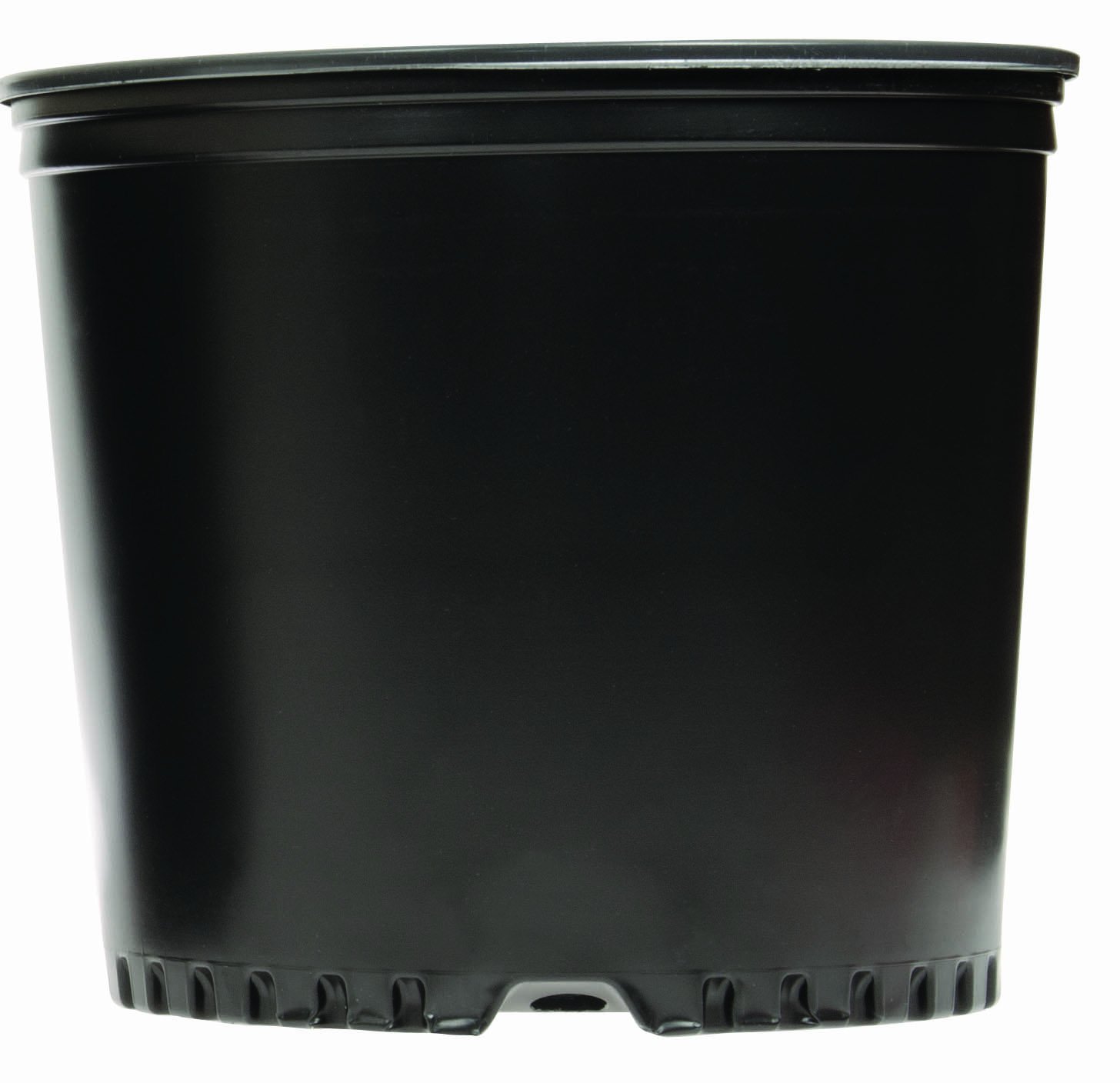 Made entirely of 100% recycled material. These pots offer many advantages including stronger rolled lip for easier carrying and filling; fluted bottom for stronger stacking/transport; extra drain holes for better drainage; and bottom drain holes to prevent weed growth. Sold in bundles and available in 4 sizes.