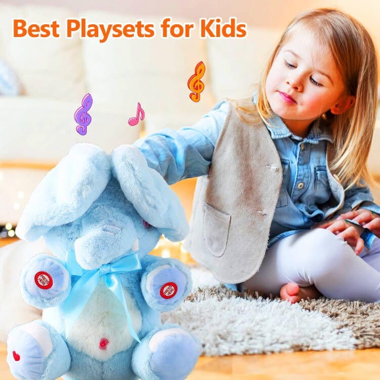 Fun Interactive Play: Press its left foot to play hide-and-seek, shyly hiding behind its oversized ears, the two ears sway up and down alternately rhythmically.