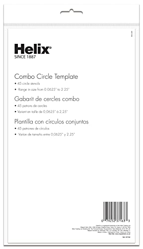 Elevate your drawing precision with the Helix Combo Circle Plastic Drawing Template. Perfect for technical drawing, drafting, geometry class, and general drawing, this versatile template offers 45 circles stamped into the body in various increments. Each cutout features a centering line and a 0.5mm pencil allowance for precise shapes. Crafted from durable, translucent, and flexible plastic, it also prevents smudging with ink risers on the reverse side. Dimensions: 6 1/2 Inch x 11 Inch. Improve your drawing experience with this high-quality template!