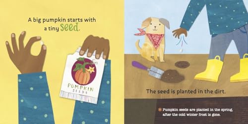 How do pumpkins grow? Families can explore fall’s favorite fruit together in this nonfiction board book from the bestselling series Hello, World! A perfect autumn or Halloween gift! Kids can learn all about how pumpkins grow in this cheerful and informative board book–with colors, shapes, sizes, and super-simple facts. (“Prize-winning pumpkins can weigh as much as a rhinoceros!”) Told in easy-to-understand terms alongside bright illustrations of seeds, sprouts, vines, flowers, and–best of all–pumpkin pies and jack-o-lanterns, this sturdy book makes learning easy for little ones and offers useful prompts to help adults engage with the reader on each page. It’s a perfect way to bring nature and gardening into the busy world of babies, toddlers, and preschoolers, where learning never stops. Look for all the books in the Hello, World! series: Solar System * Weather * Backyard Bugs * Birds * Dinosaurs * My Body * How Do Apples Grow? * Ocean Life * Moon Landing * Pets * Arctic Animals * Construction Site * Rainforest Animals * Planet Earth * Reptiles * Cars and Trucks * Music * Baby Animals * On the Farm * Garden Time * Planes and Other Flying Machines * Rocks and Minerals * Snow * Let’s Go Camping * School Day * Bedtime * From Seed to Pumpkin * Rockets and Other Space Machines * Baking