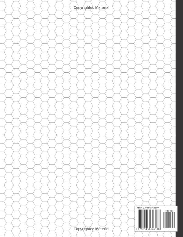 Size: 8.5 x 11 inches. 1/4-inch hexagonal graph paper. 110 pages. Premium matte softcover. This Hexagonal Graph Paper notebook contains 110 pages, it is perfect for chemistry notes, practice and quilting. It will also make an ideal gift for family, friends, colleagues, children and loved ones on birthdays, Christmas, Thanksgiving and holidays.