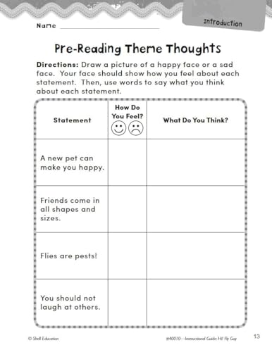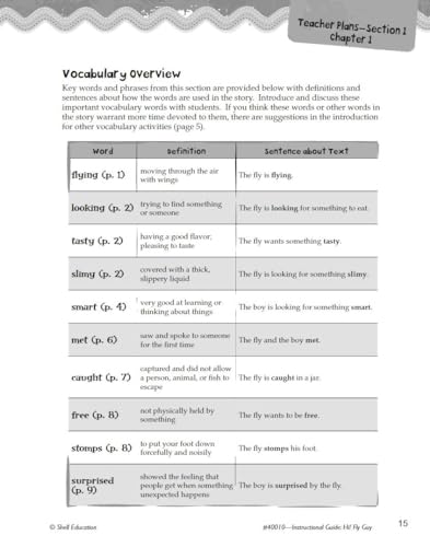 This instructional guide helps elementary students improve reading comprehension, vocabulary, and analytical skills using the book “Hi! Fly Guy”.