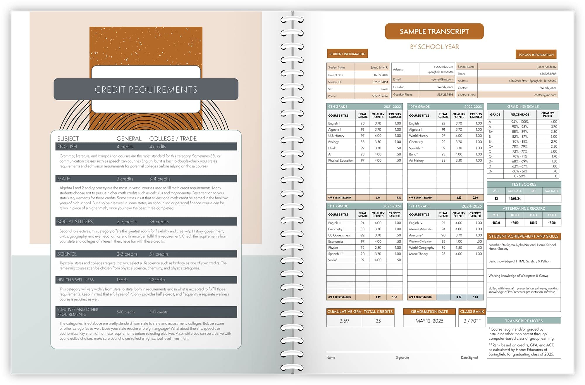 - BUILD A PORTFOLIO: Lay out a curriculum plan, keep track of volunteer hours, make note of literature reading, and more. Every page is designed to help you record everything your student will need for a complete transcript and portfolio.