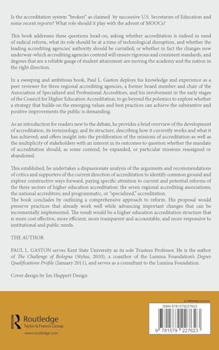 Is the accreditation system “broken” as claimed by successive Secretaries of Education and some recent reports? This book addresses this question head-on, asking whether accreditation is indeed in need of radical reform, and whether the agencies’ authority should be curtailed; or whether in fact the changes now underway – that accrediting agencies contend ensure rigorous and consistent standards and degrees that are a reliable gauge of student attainment – are moving the academy and the nation in the right direction. In a sweeping and ambitious book, Paul Gaston deploys his knowledge and experience as a peer reviewer for three regional accrediting agencies, a former board member and chair of the Association of Specialized and Professional Accreditors, and his involvement in the early stages of the Council for Higher Education Accreditation, to go beyond the polemics to explore whether a strategy that builds on the emerging values and good practices can achieve the substantive and positive improvements the public is demanding.As an introduction for readers new to the debate, he provides a brief overview of the development of accreditation, its terminology, and structure, describing how it currently works, and what it has achieved; and offers insight into the proliferation of the missions of accreditation – as well as the multiplicity of stakeholders with an interest in its outcomes – to question whether the mandate of accreditation should, as some contend, be expanded, or particular missions reassigned or abandoned. This established, he undertakes a dispassionate analysis of the arguments and recommendations of critics and supporters of the current direction of accreditation to identify common ground and explore constructive ways forward, paying specific attention to current and potential reforms of the three sectors of higher education accreditation: the seven regional accrediting associations, the national accreditors, and programmatic, or “specialized” accreditation. The book concludes by outlining a comprehensive approach to reform. His proposal would preserve practices that already work well while advancing important changes that can be incrementally implemented. The result would be a higher education accreditation structure more cost effective, more efficient, more transparent and accountable, and more responsive to institutional and public needs.