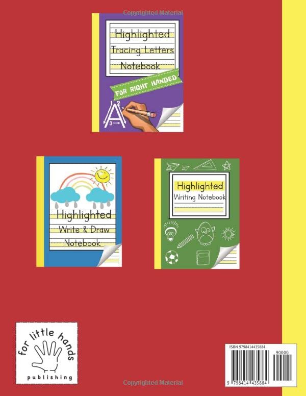 Does your Leftie begin an adventure with handwriting? This Highlighted Writing Journal is a perfect choice for beginner writers and for children who are struggling with proper letter placement. Occupation Therapists recommend highlighted bottom line paper for all kids with writing problems. Learning the letters Aa-Zz Writing direction is customized for left-handers 107 pages with highlighted dotted lines Bonus Page with Letter Formation for Left Handed Learners 8.5” x 11 ” There are also other highlighted notebooks available: Highlighted Writing Notebook Highlighted Write & Draw Journal Highlighted Tracing Letters for Right Handed