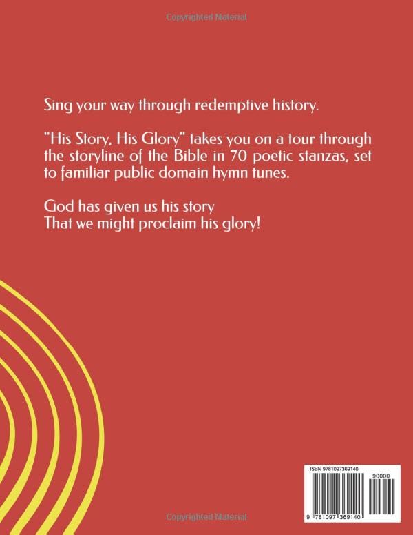 Sing your way through the history of salvation. “His Story, His Glory” takes you on a tour through the storyline of the Bible in 70 poetic stanzas, set to familiar hymn tunes (SATB scores – public domain). A text-only booklet with Scripture references is also available. God has given us his story that we might proclaim his glory!