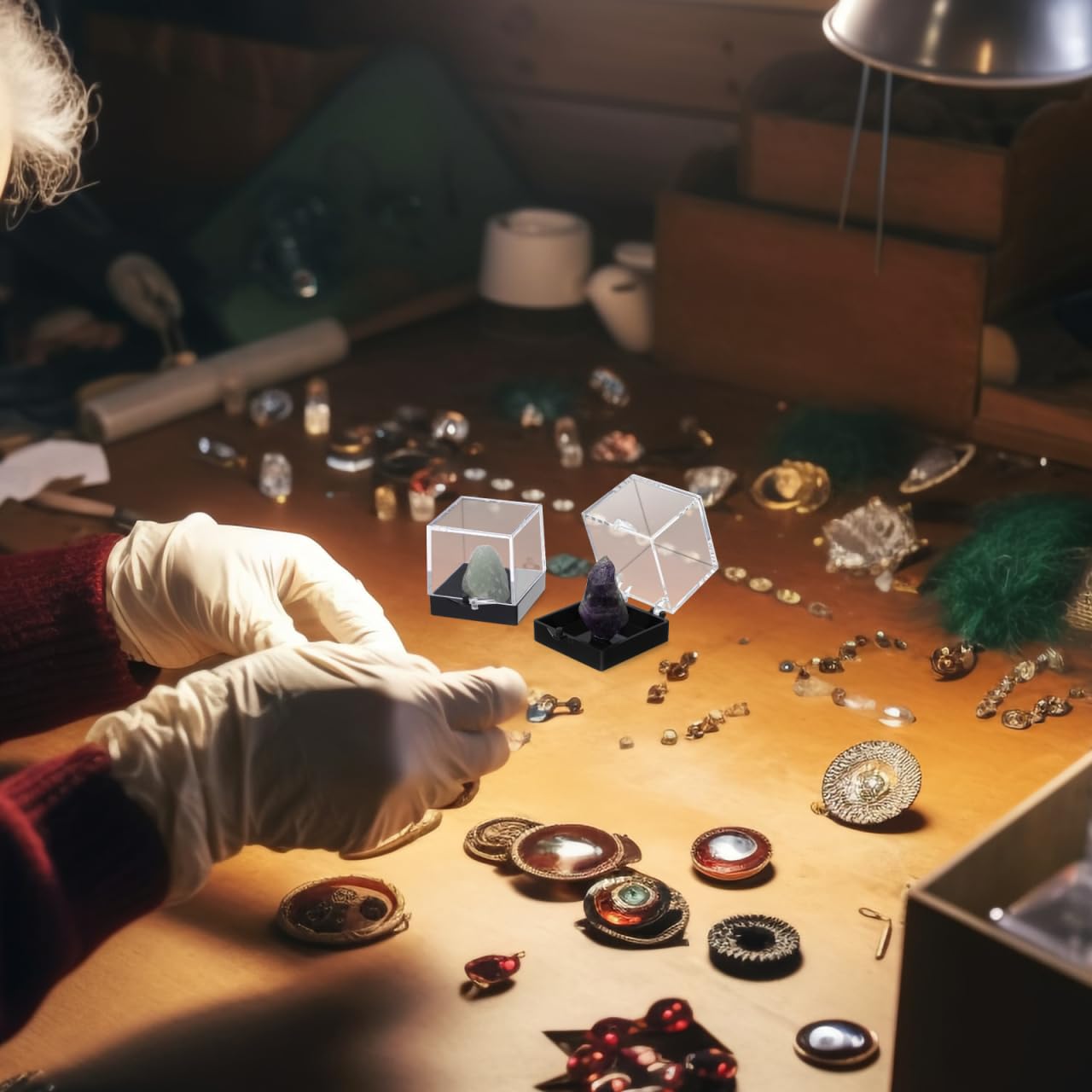 Specimen organizing box: exquisite and compact: you will receive 12 plastic boxes with lids; Size is 3.50X3.50X3.50cm/1.38X1.38X1.38in,small and exquisite, easy to carry and decorate your home