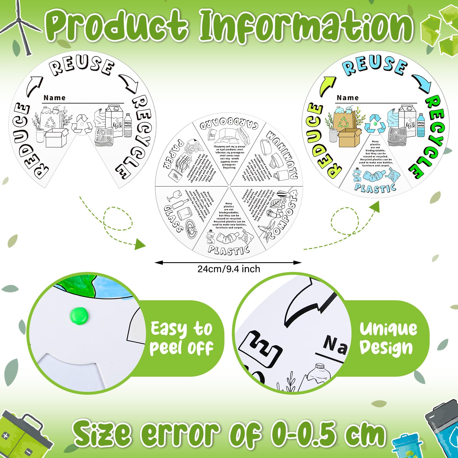 Features: Fun DIY Crafts: Use our recycled crafts kit for a fun and educational DIY activity. It’s a great way to communicate the importance of recycling, reusing, and reducing waste, thereby promoting an environmentally friendly lifestyle. Creativity for Expression: The DIY coloring feature of our Earth Day coloring wheel crafts allows for the freedom to express creativity and make unique custom pieces, adding fun to the learning process. Specifications: Material: paper Color: color Your Own Size: diameter of 9.84 inches/ 25 cm Package includes: 12 x DIY Coloring Wheel Craft 12 x Metal Peg Accessories Notes: Manual measurement, please allow slight errors on size. The color may exist a slight difference due to different screen displays.