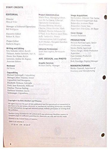 Holt Elements of Language, 5th Course: Grammar, Usage and Mechanics- Language Skills Practice, Grade 11