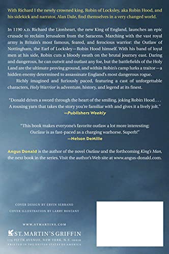 After the events of Outlaw, Robin of Locksley–and his sidekick and narrator, Alan Dale–finds himself in a very different England and a very changed world. In 1190 A.D. Richard the Lionheart, the new King of England, has launched his epic crusade to seize Jerusalem from the Saracens. Marching with the vast royal army is Britain’s most famous, most feared, most ferocious warrior: the Outlaw of Nottingham, the Earl of Locksley–Robin Hood himself. With his band of loyal men at his side, Robin cuts a bloody swath on the brutal journey east. Daring and dangerous, he can outwit and outlast any foe–but the battlefields of the Holy Land are the ultimate proving ground. And within Robin’s camp lurks a traitor–a hidden enemy determined to assassinate England’s most dangerous rogue. Richly imagined and furiously paced, featuring a cast of unforgettable characters, Holy Warrior is adventure, history and legend at its finest.