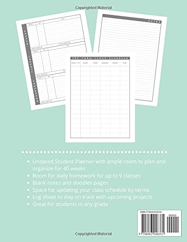 8.5″x11″ Undated planner helps students stay organized and keep track of homework assignments. This tracker log includes space to record your class schedule for each term. list out homework on a daily basis by class, as well as keep a log of upcoming project or group assignments. The tracker contains enough weekly schedule pages to last an entire school year! Places for teacher and parent signatures helps to keep your child on track and accountable for their work. There is also plenty of space for notes, scribbles, and doodles! The simple, light blue cover makes it a great choice for girls or boys. Durable glossy, paperback cover keeps this notebook looking great all year!