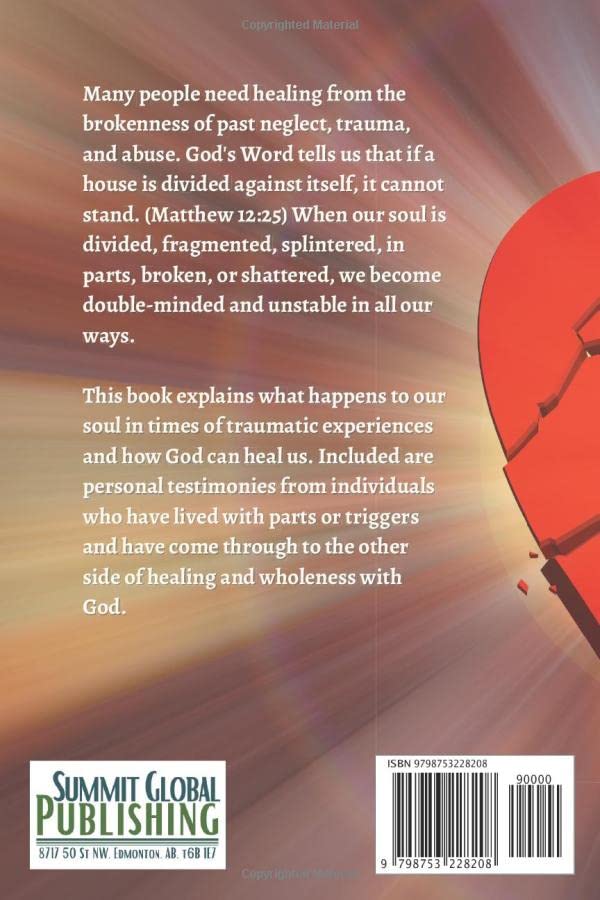 Many people need healing from the brokenness of past neglect, trauma, and abuse – some more than others. God’s Word tells us that if a house is divided against itself, it cannot stand. (Matthew 12:25) When our soul is divided, fragmented, splintered, in parts, broken, or shattered, we become double-minded and unstable in all our ways. I am a miracle, as God has brought me out of a past of mental, physical, emotional, spiritual, and sexual abuse. Only God could have carried me through this life of pain, sorrow, and abuse. He healed me and made me whole. God desires to bring all of humanity to healing and wholeness, so that we can love like He loves us. God is love; pure love and only love can mend a broken heart. In other words, only God’s pure love can mend our broken hearts. This book explains what happens to our soul, which consists of our mind, our emotions and our heart, in times of traumatic experiences, and how God can heal us.
