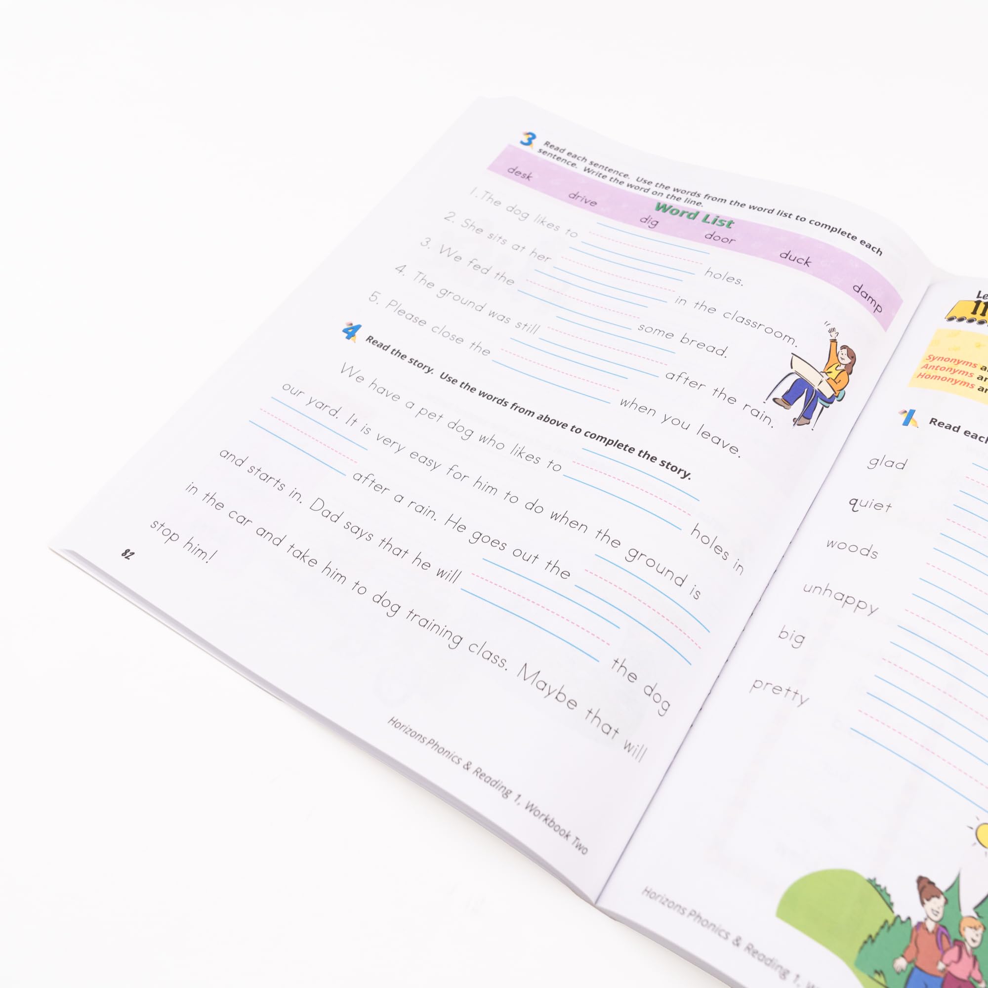Who said reading has to be difficult? With the colorful Horizons 1st Grade Phonics & Reading Set, your child will improve his reading skills with two student workbooks containing 160 engaging lessons on consonant digraphs, vowel diphthongs, and more! Easy-to-use teacher’s guide and two companion readers also included!