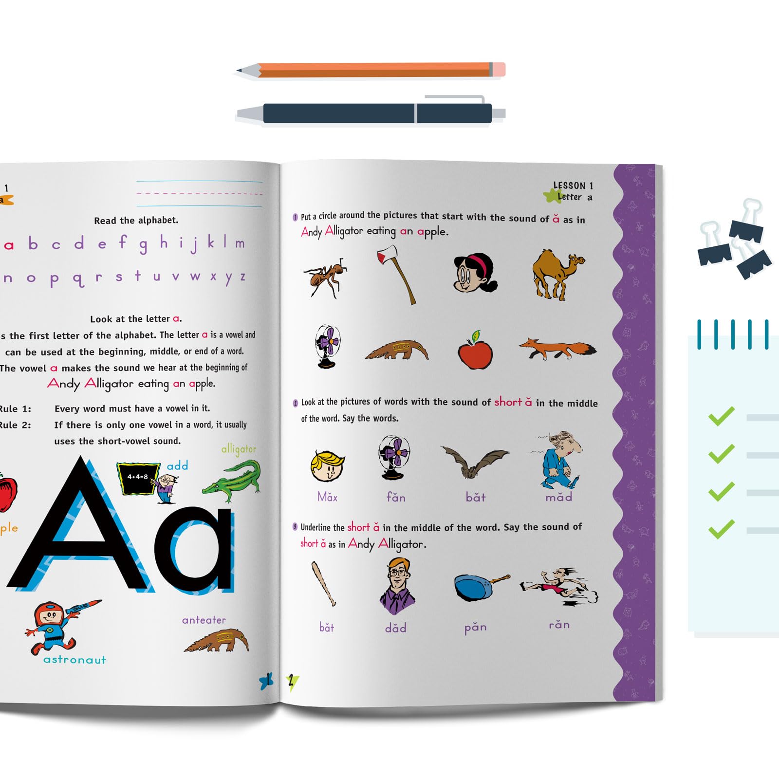 Prepare your child for a lifetime of reading and successful learning with the Horizons Kindergarten Phonics & Reading Student Book 1 from Alpha Omega Publications. Purposeful and strategic, each engaging lesson in this colorful, fun-filled workbook carefully teaches your child the basics of phonics. One by one, as your child learns to recognize and write all 26 letters of the alphabet, he’ll also be learning their phonetic sounds at the same time. Exciting hands-on learning activities reinforce each consonant and vowel sound with worksheets including matching, puzzles, fill-in-the-blank, and more! And unlike other phonics curriculums, the Horizons Kindergarten Phonics & Reading Student Book 1 introduces vowels and their phonetic sounds early so your child can start reading right away with words that contain consonant and short vowels sounds. What could be more exciting than watching your kindergartner take his first steps toward reading success? But wait–there’s more! Perforated pages allow your child to proudly display his finished worksheets on the wall or refrigerator. Just imagine how thrilled your child will be when others see what he has accomplished each day! Is there any wonder why thousands of homeschooling parents enjoy the amazing benefits of this popular reading curriculum? Start your child with the Horizons 1st Grade Phonics & Reading Student Book 1. Order your copy today!