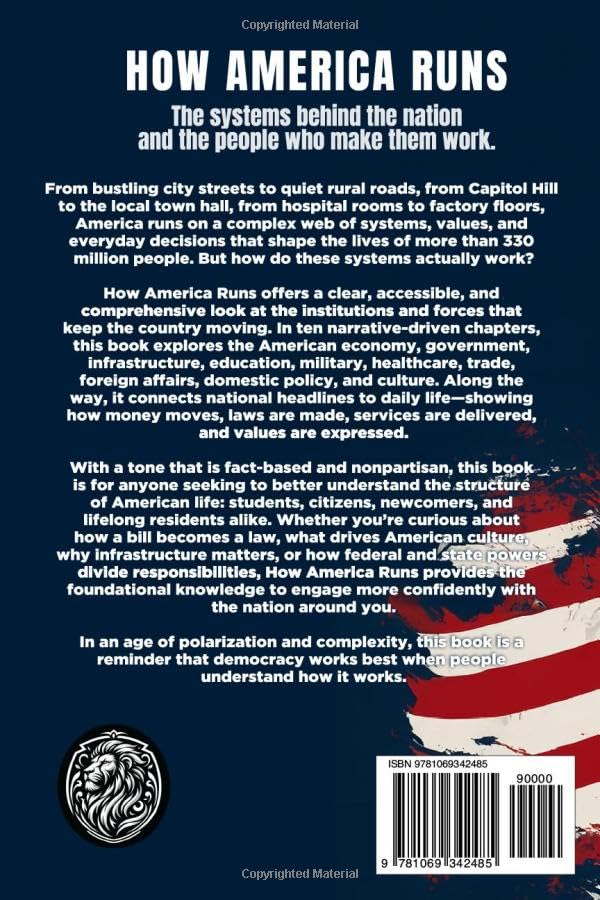How America Runs: Understand Every Part of the American System The Story of How Your Country Works–And Why It Matters to You Have you ever wondered why your morning coffee costs what it does? Or what actually happens when you pay your taxes? Or who ensures the water from your tap is safe to drink? In “How America Runs,” author Daniel Bulmez takes you on a personal journey through the systems that shape your everyday life–systems you interact with constantly but might rarely notice. Picture this: Your alarm wakes you at 6 AM. As you scroll through news on your phone, you’re engaging with telecommunications regulations and broadcast standards. When you turn on your shower, you’re benefiting from local water treatment facilities and EPA guidelines. Your breakfast cereal has a nutrition label mandated by the FDA. And you haven’t even left home yet. Your commute? That highway was funded by a mix of federal and state dollars. The safety features in your car exist because of government standards. Even the podcast you listen to travels through airwaves licensed by the FCC. What makes this book essential for you: Discover how your tax dollars translate into the services you use daily Understand why your healthcare costs what it does and how policy affects your coverage Learn how your vote influences decisions about your community’s schools, roads, and safety See the invisible connections between your job, the global economy, and trade policies Gain clarity on issues that dominate your news feed but often seem confusing “When I received my first property tax bill, I had no idea where that money actually went,” writes one reader. “After reading this book, I not only understand my local government better, but I feel empowered to participate in town meetings because I finally know how the system works.” Whether you’re frustrated by government inefficiency, curious about how policies are really made, or simply want to be a more informed citizen, Bulmez offers you a clear-eyed explanation of American systems without partisan spin. Through personal stories and relatable examples, he bridges the gap between abstract policies and your daily reality. As you turn each page, you’ll recognize parts of your own life reflected in the mechanics of America. You’ll see how decisions made in Washington, your state capitol, or your local city hall directly impact your family’s opportunities, your neighborhood’s development, and your financial future. “How America Runs” doesn’t just explain how America works–it shows you your place within it and how you can navigate its systems more effectively. Your country, your systems, finally explained.