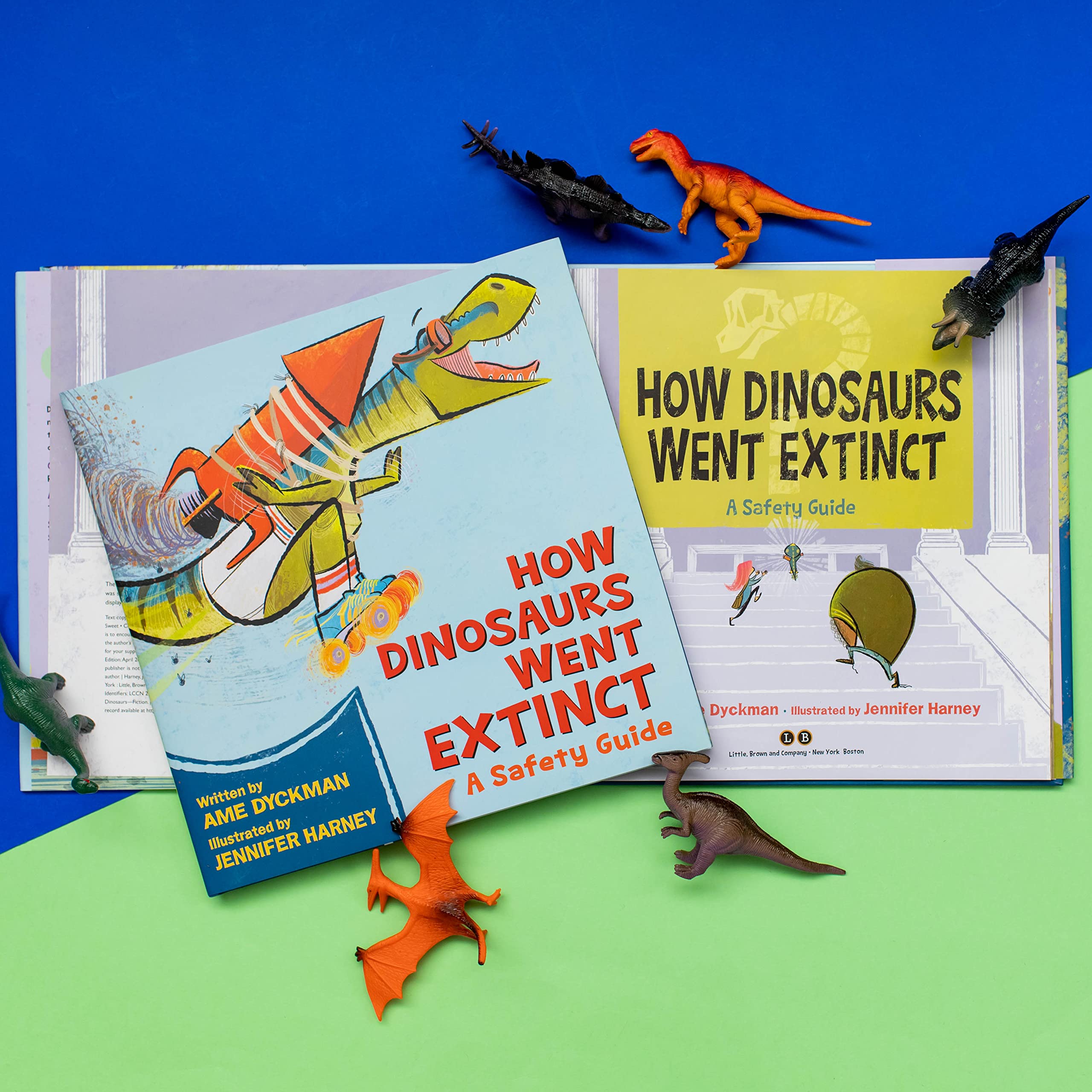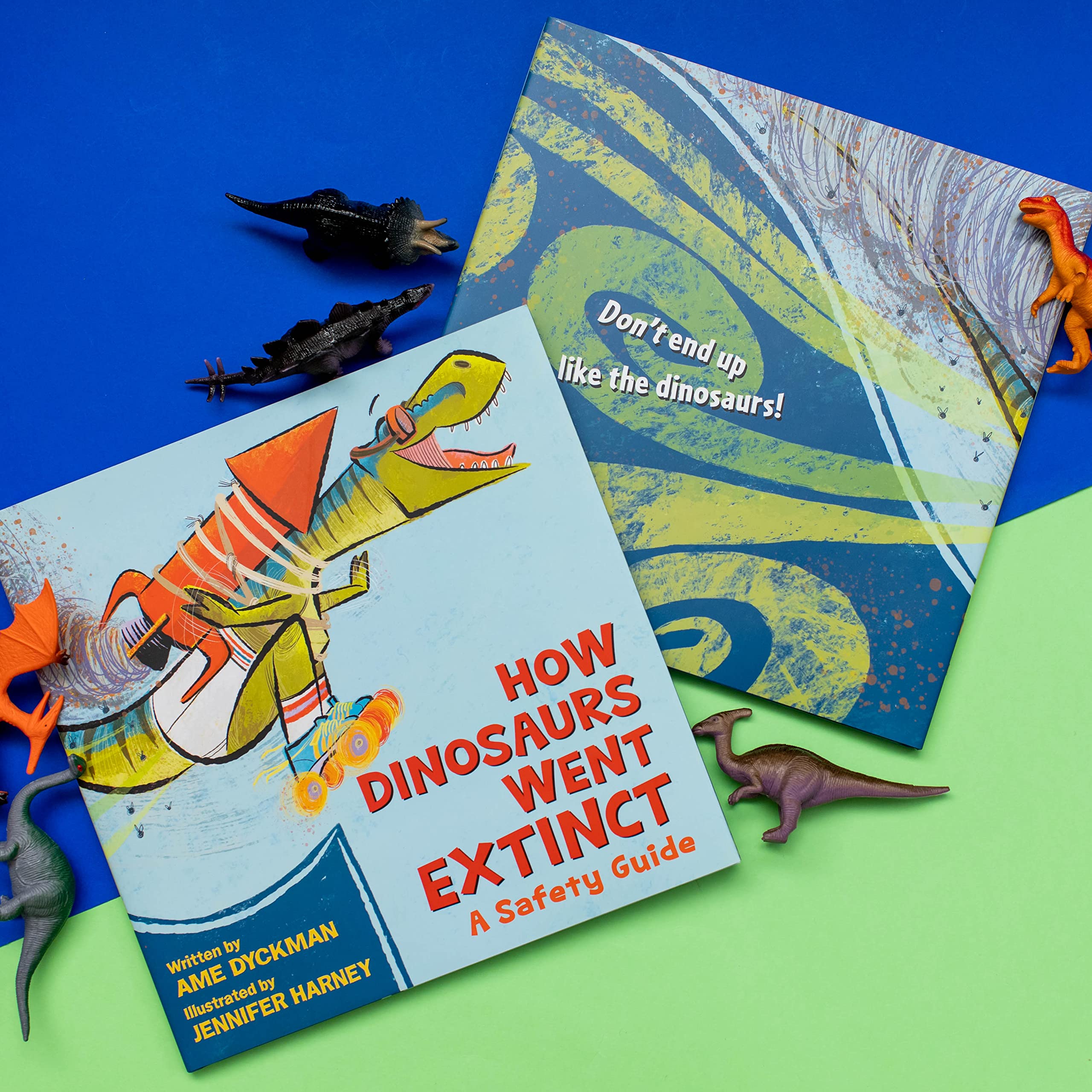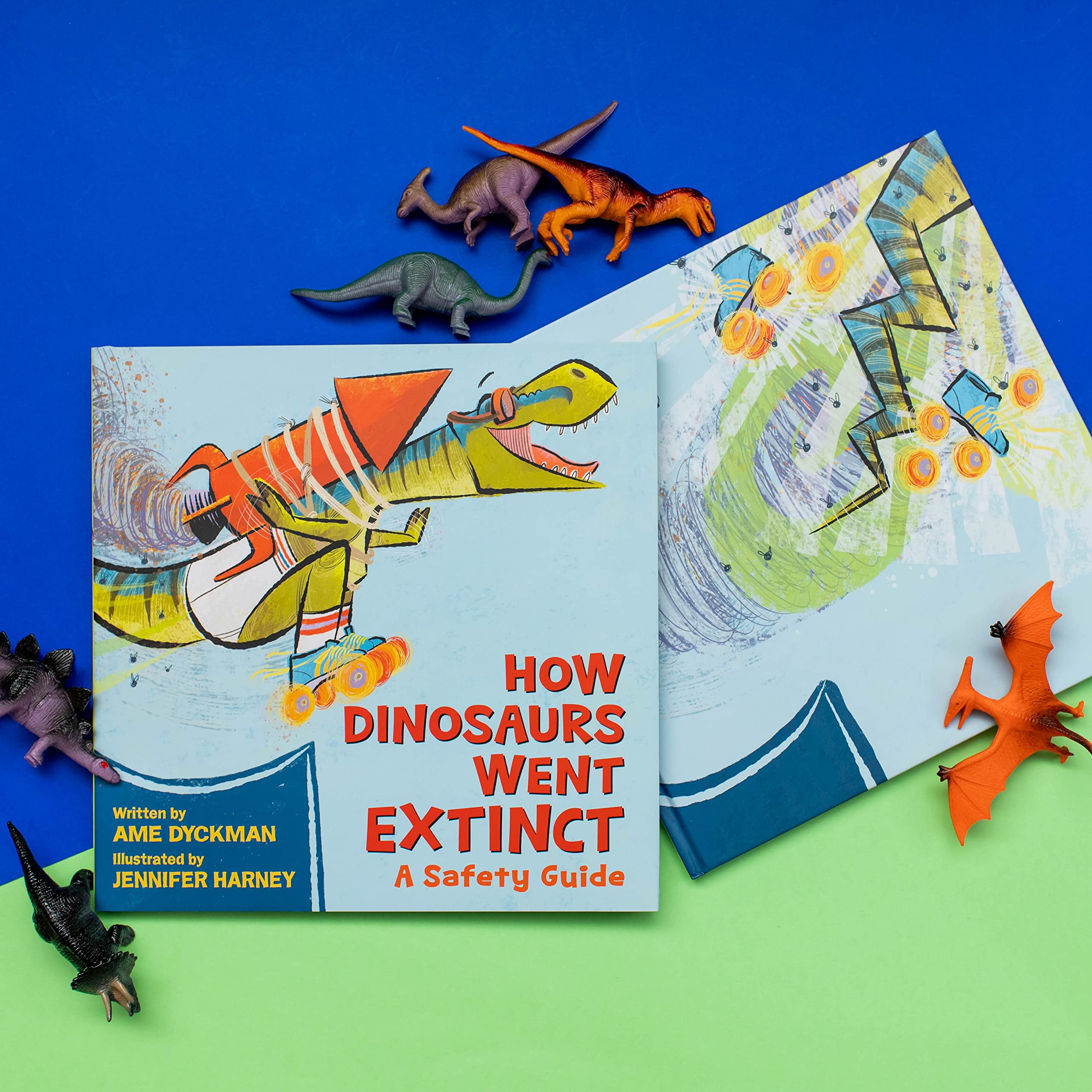 From author Ame Dyckman and illustrator Jenn Harney comes a hilarious faux-cautionary tale featuring dad jokes and tantrum-throwing dinosaurs! In this outrageous “safety guide,” a child in a museum asks their parents how the dinosaurs all became extinct. Well, their father has some theories. Gallimimus? Ran with scissors. Ankylosaurus? Tipped in their chair. Spinosaurus? Swam after eating. Tyrannosaurus rex? Didn’t change their underwear. By the end of the story, the child vows to never do any of these “dangerous” things again. Those dinosaurs should have been more careful! This off-the-wall picture book written by New York Times bestselling author Ame Dyckman with uproarious illustrations by Jenn Harney will have kids laughing out loud as they see dinosaurs getting into some all-too-familiar hijinks.