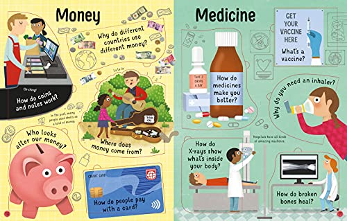This interactive lift-the-flap book answers children’s questions about how various systems like electricity and money work.