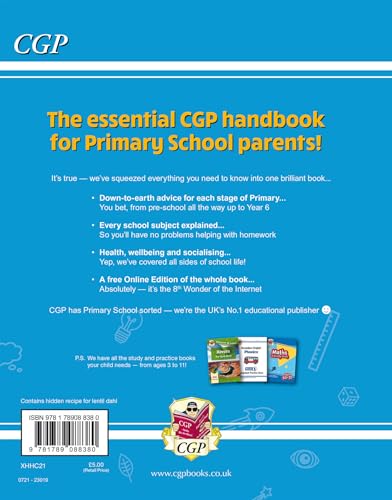 If your child is at Primary School (or starting soon), you’ll probably have noticed a few changes to school life since you were a bright-eyed young learner. That’s why we’ve packed this indispensable CGP book with advice to help you parent your way through Primary like a pro. We’ve covered the complete Primary journey – from choosing a primary school to preparing your child for secondary school – and included heaps of practical advice on everything from school dinners, to making friends, to sussing out the other parents at the school gates. We’ll give you a sneak preview of what they’ll learn at school, year by year, subject by subject, plus lots of information on assessments, like SATs and 11+. We’ve also included information on those new-fangled maths techniques, a Parents’ Guide to Phonics and a handy Spelling, Punctuation & Grammar Glossary, so you can help with those tricky homework questions without missing a beat! To round things off, we’ve thrown in a free Online Edition that lets you read the entire book on a PC, Mac or tablet – you’ll have access via ‘My Online Products’ on the CGP website from the moment you place your order. When the book arrives, just use the unique code printed inside the cover to gain full access.