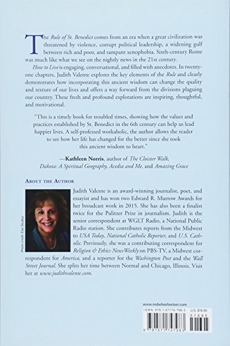 “How to Live helps us see what we are losing; to make us taste what we’re in danger of dismissing as unimportant. It reminds us of what we’ve missed but is still at hand, waiting to enliven the age in which we live as well as to be remembered for its contributions to the past.”–Joan Chittister The Rule of St. Benedict arose from an era when a great civilization was threatened by violence, economic forces that favored the wealthy, political leaders that lacked the trust of the public, and rampant xenophobia. Similar to the anxieties and frustrations of the 6th century, we are living in a time where societies need to stress community over competition, consensus over conflict, simplicity over self gain, and silence over the constant chatter and distractions of our lives. In How to Live, Judith Valente explores the key elements of the rule and clearly demonstrates how incorporating this ancient wisdom can change the quality and texture of our lives offering a way forward from the divisions gripping our country. These fresh and profound explorations are inspiring and thoughtful, and will motivate readers to live a meaningful life.
