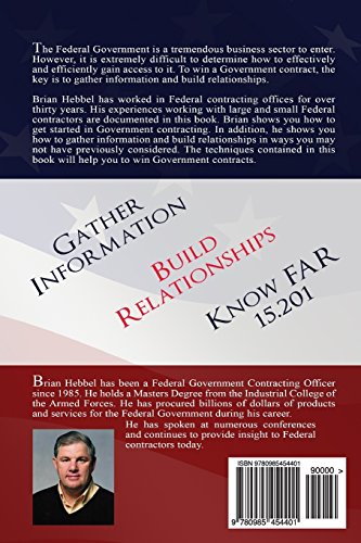 This book is intended to help both new and experienced federal contractors win contracts. Whether you are brand new or experienced in this field, you will find that you require certain tools and techniques to effectively market and sell to the federal government. I will describe the best practices you need to gain knowledge, gather information and develop relationships. These three areas are the keys to your Federal contracting success. The first two chapters outline what a contractor needs to know prior to marketing and selling to the Federal Government, while the subsequent chapters outline the marketing and sales techniques that will make you successful in the federal marketplace. This book contains much of the information necessary to help experienced and inexperienced federal contractors. The tools and techniques outlined in this book are often overlooked and some are never considered. The book will help to level the playing field if you are an inexperienced Government contractor. If you are an experienced contractor, this book will help you to “raise the bar” for your marketing and sales staff by providing what I consider the key marketing and sales techniques for the federal marketplace. It will help you to break down the barriers that are preventing you from entering the federal marketplace. I have worked in area of federal government acquisition for over thirty-two years and have institutional knowledge of the acquisition process from the inside. I have met with hundreds of contractors over my career. I have found the lack of marketing knowledge among some federal contractors is shocking. Over time, I have noticed that some contractors have been very successful marketing and selling to the federal government and other contractors have not. This book will outline the effective ways to market and sell to the federal government, including describing why some contractors are successful while others are not. I’ll get to the heart of the matter and present the marketing and selling techniques to guide you on a successful journey in the federal marketplace.