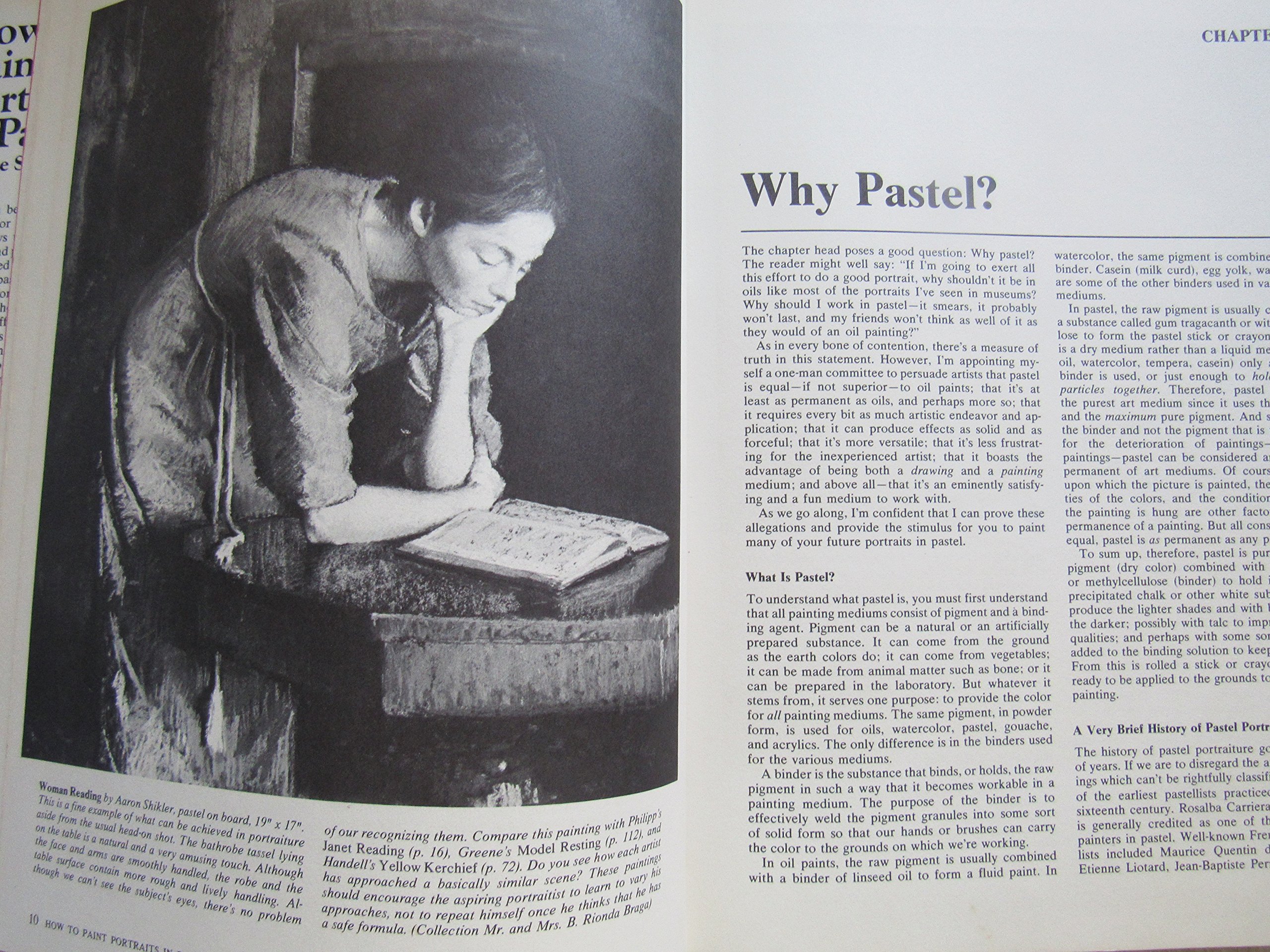 Discusses the technical and artistic aspects of painting portraits in pastels and provides reproductions of works by masters