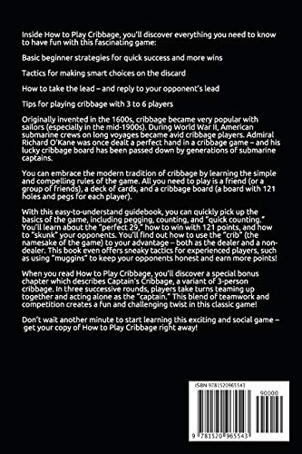 Master Cribbage and Impress Your Friends! Inside How to Play Cribbage, you’ll discover everything you need to know to have fun with this fascinating game: Basic beginner strategies for quick success and more wins Tactics for making smart choices on the discard How to take the lead – and reply to your opponent’s lead Tips for playing cribbage with 3 to 6 players Originally invented in the 1600s, cribbage became very popular with sailors (especially in the mid-1900s). During World War II, American submarine crews on long voyages became avid cribbage players. Admiral Richard O’Kane was once dealt a perfect hand in a cribbage game – and his lucky cribbage board has been passed down by generations of submarine captains. You can embrace the modern tradition of cribbage by learning the simple and compelling rules of the game. All you need to play is a friend (or a group of friends), a deck of cards, and a cribbage board (a board with 121 holes and pegs for each player). With this easy-to-understand guidebook, you can quickly pick up the basics of the game, including pegging, counting, and “quick counting.” You’ll learn about the “perfect 29,” how to win with 121 points, and how to “skunk” your opponents. You’ll find out how to use the “crib” (the namesake of the game) to your advantage – both as the dealer and a non-dealer. This book even offers sneaky tactics for experienced players, such as using “muggins” to keep your opponents honest and earn more points! When you read How to Play Cribbage, you’ll discover a special bonus chapter which describes Captain’s Cribbage, a variant of 3-person cribbage. In three successive rounds, players take turns teaming up together and acting alone as the “captain.” This blend of teamwork and competition creates a fun and challenging twist on this classic game! Don’t wait another minute to start learning this exciting and social game – get your copy of How to Play Cribbage right away! It’s fast and easy to order – Just scroll up and click the BUY NOW WITH ONE CLICK button on the right-hand side of your screen.