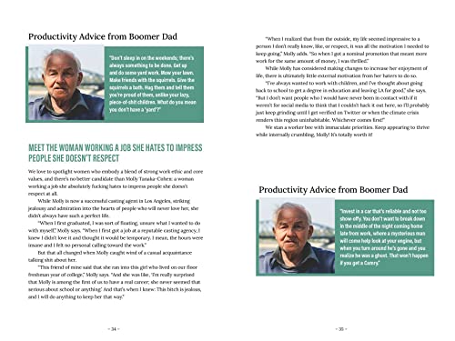 This book uses humor and satire to promote critical thinking about work-life balance, mental health, and modern societal pressures.