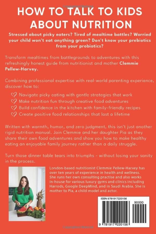 Stressed about picky eaters? Tired of mealtime battles? Worried your child won’t eat anything green? Don’t know your prebiotics from your probiotics? Transform mealtimes from battlegrounds to adventures with this refreshingly honest colour guide from nutritionist and mother Clemmie Pellew-Harvey. Combining professional expertise with real-world parenting experience, this practical handbook shows you how to: Navigate picky eating with proven, gentle strategies that actually work Make nutrition fun through creative food adventures and cultural exploration Build confidence in the kitchen with family-friendly recipes and meal-prep solutions Create positive food relationships that last a lifetime Handle food allergies and dietary restrictions with confidence Written with warmth, humour, and zero judgment, this isn’t just another rigid nutrition manual. It’s a supportive companion filled with practical solutions, real-life stories, and simple strategies you can implement today. From turning vegetables into “superhero foods” to organising your kitchen for success, you’ll discover how to make healthy eating an enjoyable family journey rather than a daily struggle. Whether you’re dealing with a picky eater, want to boost your child’s nutrition knowledge, or simply seek ways to make mealtimes more enjoyable, this guide provides the tools you need to raise happy, healthy eaters without losing your sanity. Join Clemmie and her daughter Pia as they share their own food adventures and show you how to make nutrition education fun and effective for your family. Just Click BUY above to begin your journey