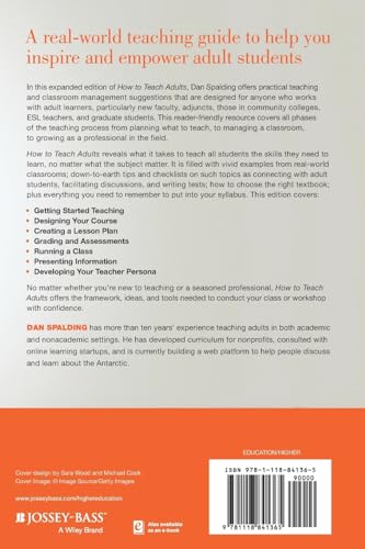Your hands-on guide to teaching adults. . . no matter what the subject In this expanded edition of How to Teach Adults, Dan Spalding offers practical teaching and classroom management suggestions that are designed for anyone who works with adult learners, particularly new faculty, adjuncts, those in community colleges, ESL teachers, and graduate students. This reader-friendly resource covers all phases of the teaching process from planning what to teach, to managing a classroom, to growing as a professional in the field. How to Teach Adults can guide new instructors who are trying to get up to speed on their own or can help teacher trainers cover what their students need to know before they get in front of a class. It is filled with down-to-earth tips and checklists on such topics as connecting with adult students, facilitating discussions, and writing tests, plus everything you need to remember to put into your syllabus and how to choose the right textbook. Dan Spalding reveals what it takes to teach all students the skills they need to learn, no matter what the topic or subject matter. Full of vivid examples from real-world classrooms, this edition: Shows how to get started and tips for designing your course Includes information for creating a solid lesson plan Gives suggestions for developing your teacher persona How to Teach Adults offers the framework, ideas, and tools needed to conduct your class or workshop with confidence.
