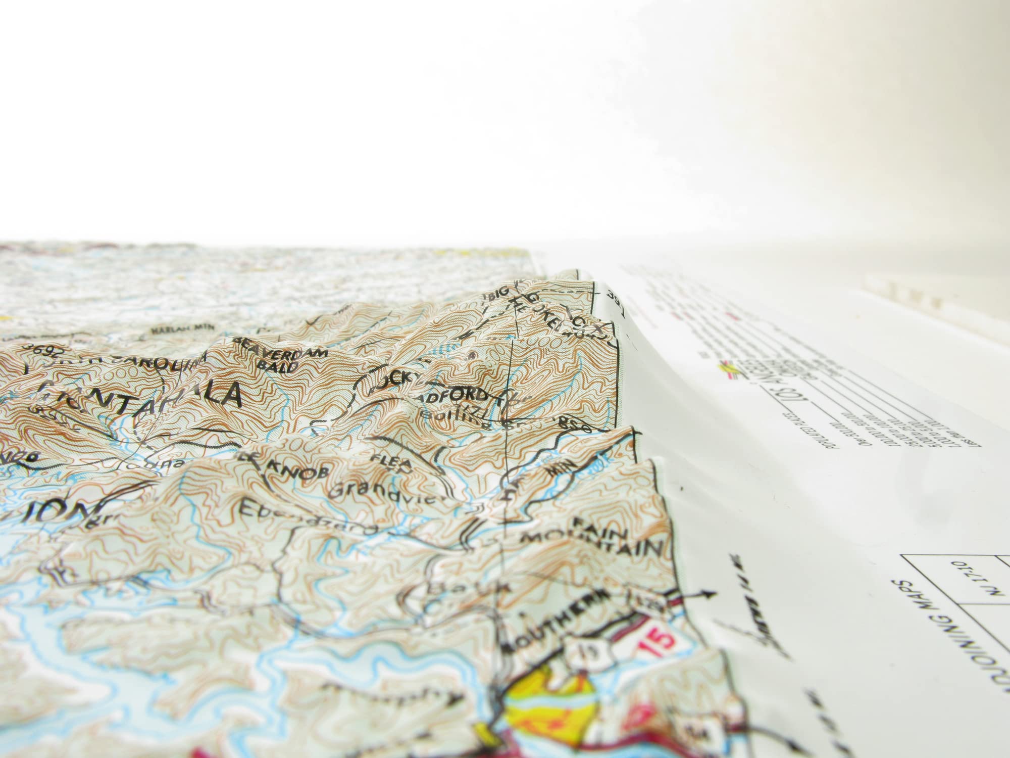 Elevate your map-game with a raised relief map. These unique interactive maps turn geographic data into 3-D topography you can actually feel. The Map Shop takes high quality maps printed on durable rigid vinyl and vacuum forms them onto a one-of-a-kind mold -creating a Raised Relief map. These tactile maps are educational, aesthetic, and a joy to touch. These maps depict changes in elevation and terrain by raising up and sinking down mirroring real world topography. Cartography by Hubbard Scientific, this raised relief map has been hand crafted by a family owned business based in Charlotte, NC.