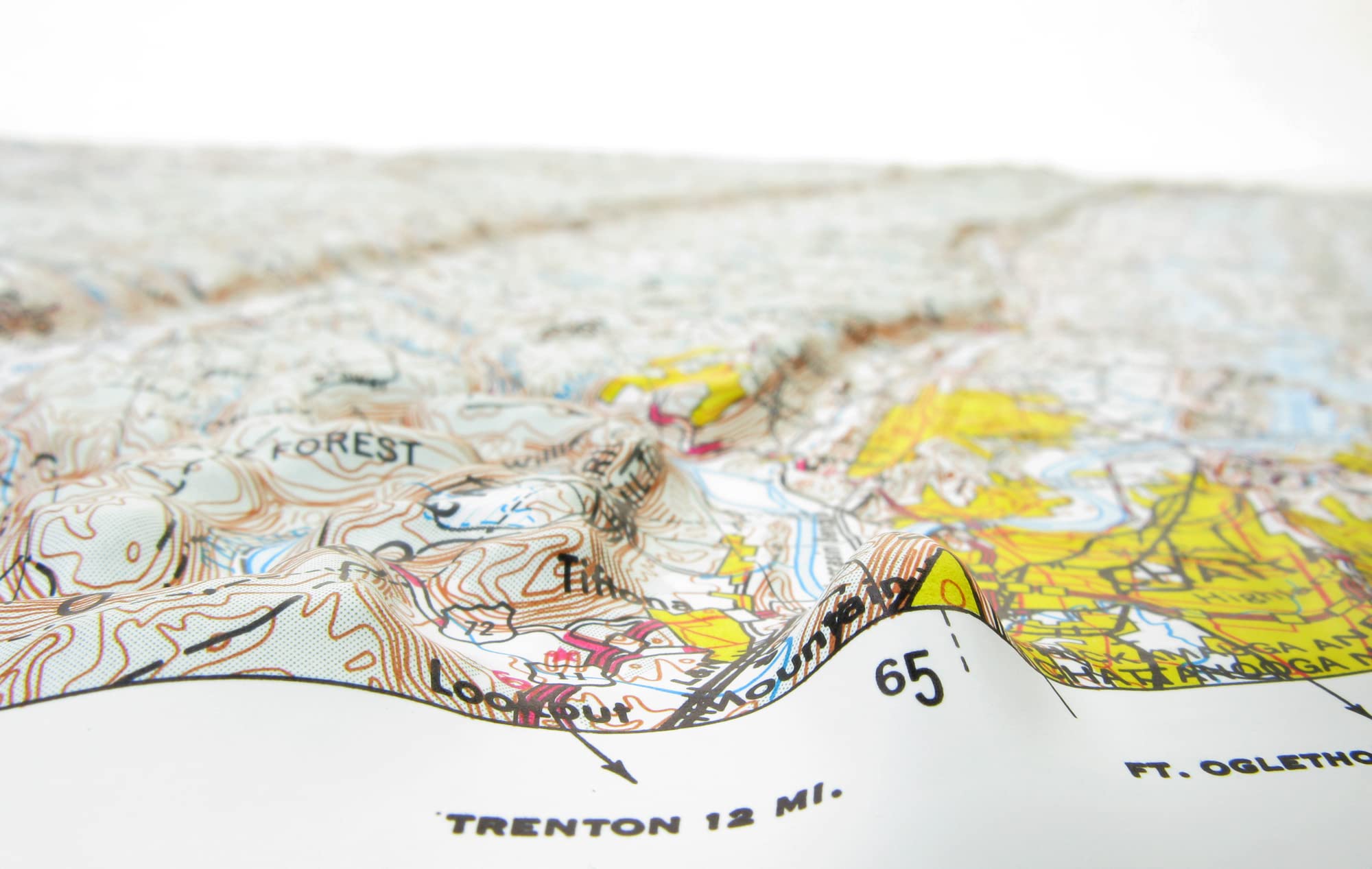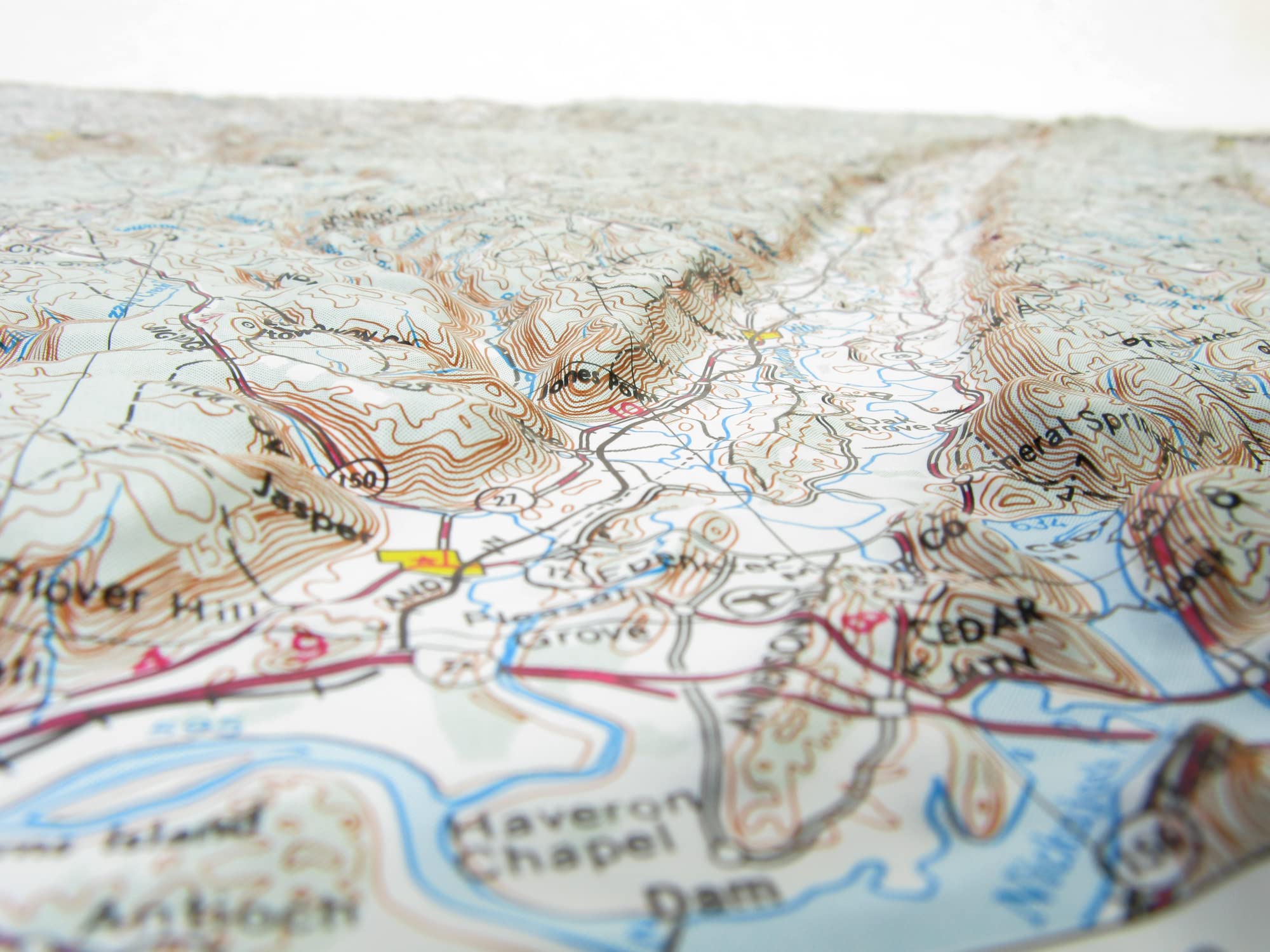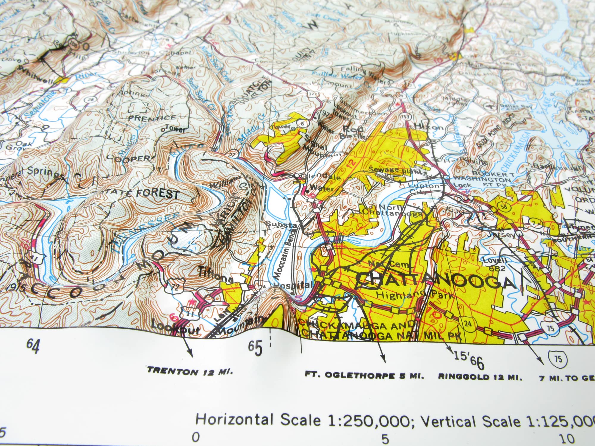 - 3D USGS CHATTANOOGA RAISED RELIEF MAP – This three-dimensional tactile map was developed by a team of cartographers using USGS regional topographic data for the Chattanooga, TN area of the Cumberland Plateau.