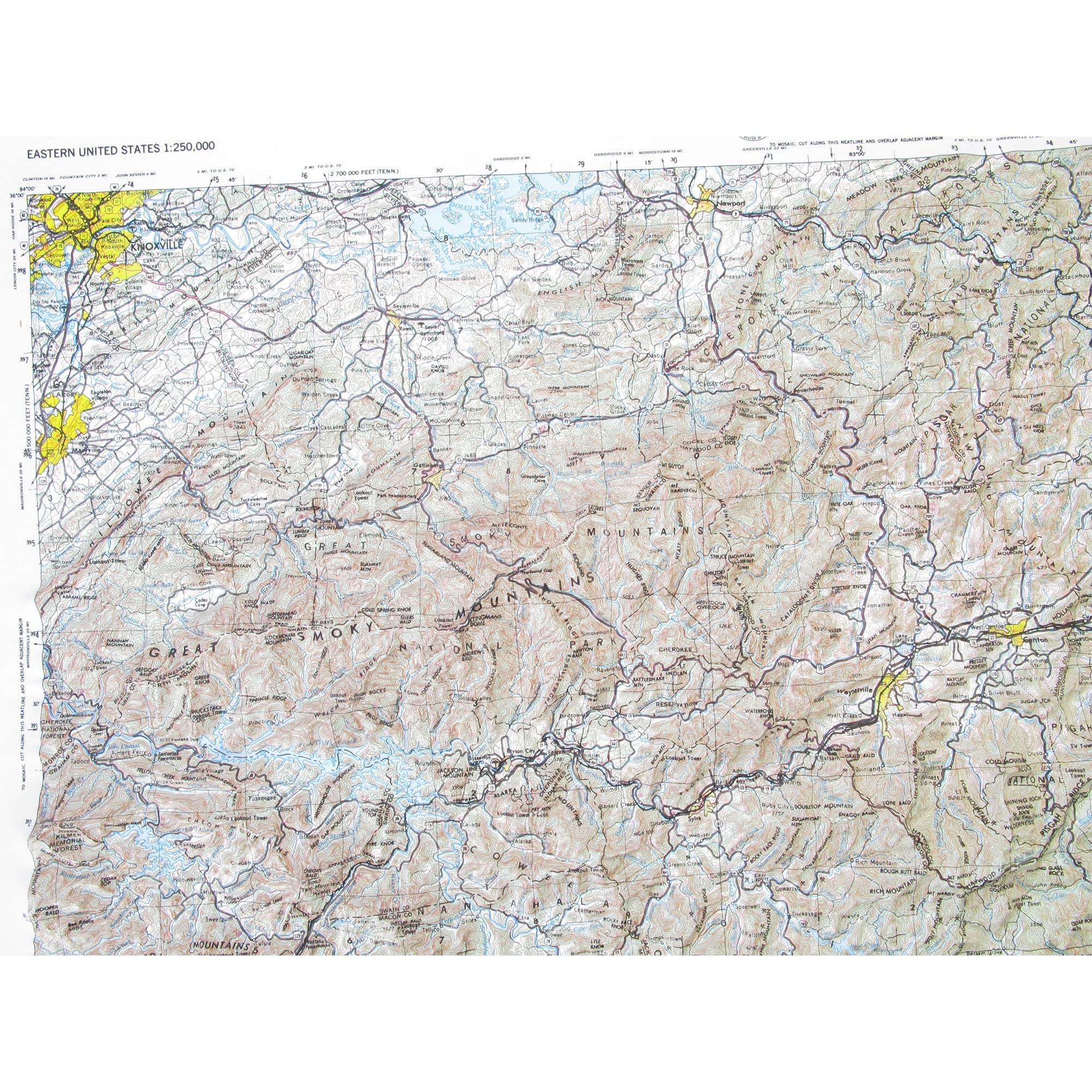 • 3D USGS KNOXVILLE RAISED RELIEF MAP – This three-dimensional tactile map was developed by a team of cartographers using USGS regional topographic data for the Knoxville, TN area of the Blue Ridge Mountains including Asheville, all of Great Smoky Mountains National Park, and portions of Pisgah, Nantahala & Cherokee National Forests.