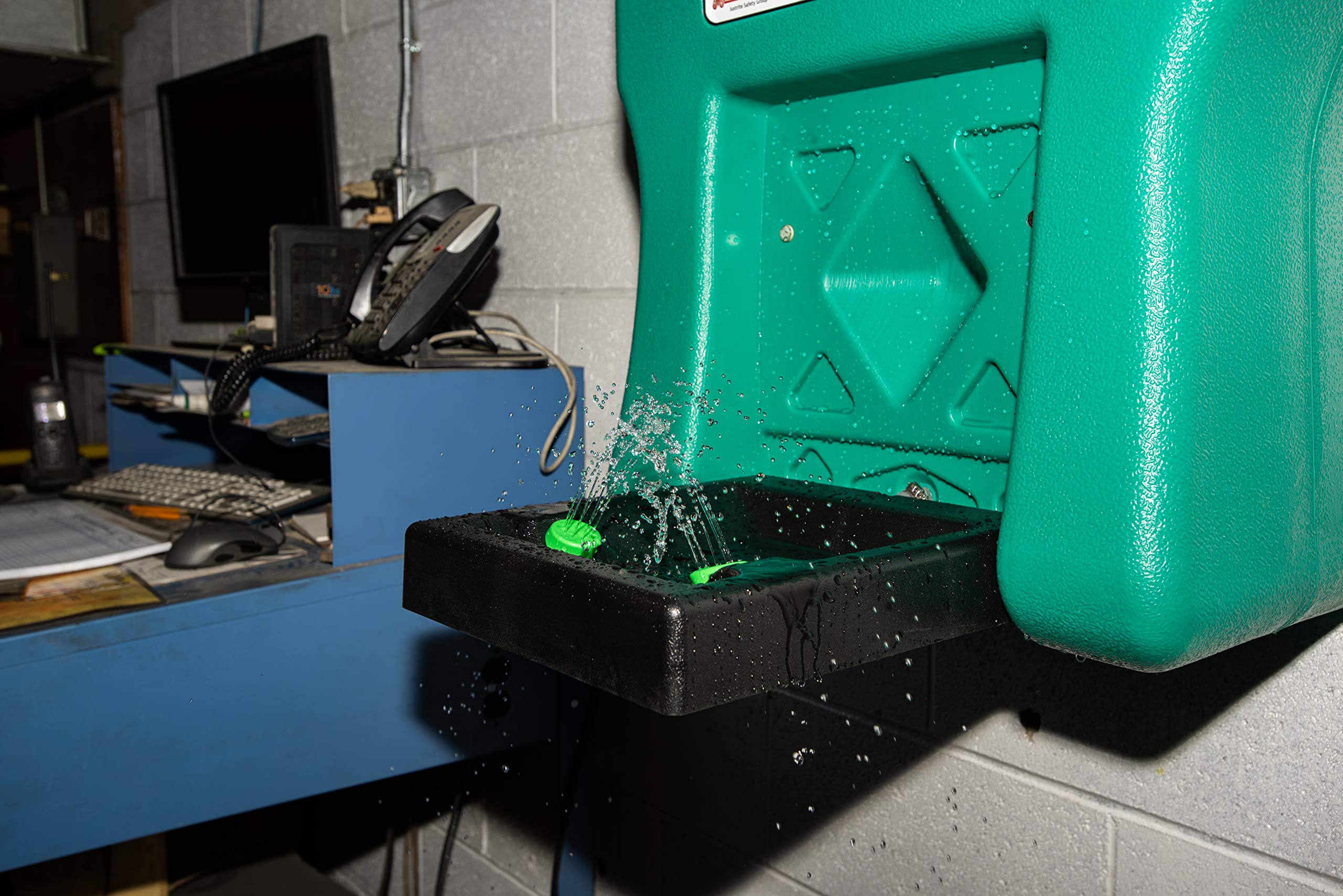 Portable, Self-Contained 16-Gallon Gravity-Fed Eyewash Station. Suitable wherever continuous water isn’t available–no plumbing needed. The gravity-fed eyewash supplies a continuous, controlled flow that exceeds the ANSI Z358. 1 standard of 1. 5 LPM (0. 4 GPM) for 15 minutes, providing a reliable safety solution no matter where you are located. Carrying handles and concealed mounting bracket make moving and relocating easy. Can be wall mounted or used on a bench or tabletop. High-visibility color is easy to identify in emergency situations. Simple to use with pull-down activation handle. Easy to maintain–wide fill opening enables quick inspection, cleaning and filling. Meets ANSI Z358. 1 and EN15154 requirements.