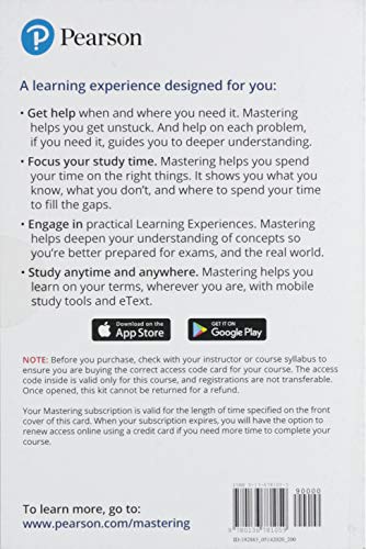 DIGITAL UPDATE available for Fall 2021 classes For two-semester Anatomy & Physiology courses. This ISBN is for the Modified Mastering access card. Pearson eText is included. Equipping learners with 21st-century skills to succeed in A&P and beyond Human Anatomy & Physiology by best-selling authors Elaine Marieb and Katja Hoehn motivates and supports learners at every level, from novice to expert, equipping them with 21st-Century skills to succeed in A&P and beyond. Each chapter guides students from mastering A&P terminology to applying knowledge in clinical scenarios, to practicing the critical thinking and problem-solving skills required for entry to nursing, allied health, and exercise science programs. Recognized for its engaging, conversational writing style, easy-to-follow figures, and its unique clinical insights, Human Anatomy & Physiology, continues the tradition of innovation and addressing the most effective ways students learn. Personalize learning with Mastering A&P with Pearson eText This flexible digital platform combines unrivaled content, online assessments, and customizable features to personalize learning and improve results, one student at a time. Pearson eText is an easy-to-use digital textbook available within Mastering that lets you read, highlight, take notes, and review key vocabulary all in one place. NOTE: Before purchasing, check with your instructor to confirm the correct ISBN. Several versions of the MyLab(r) and Mastering(r) platforms exist for each title, and registrations are not transferable. To register for and use MyLab or Mastering, you may also need a Course ID, which your instructor will provide. Used books, rentals, and purchases made outside of Pearson If purchasing or renting from companies other than Pearson, the access codes for the Mastering platform may not be included, may be incorrect, or may be previously redeemed. Check with the seller before completing your purchase.
