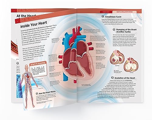 This children’s encyclopedia teaches fundamental concepts of human anatomy and physiology, specifically the circulatory system.