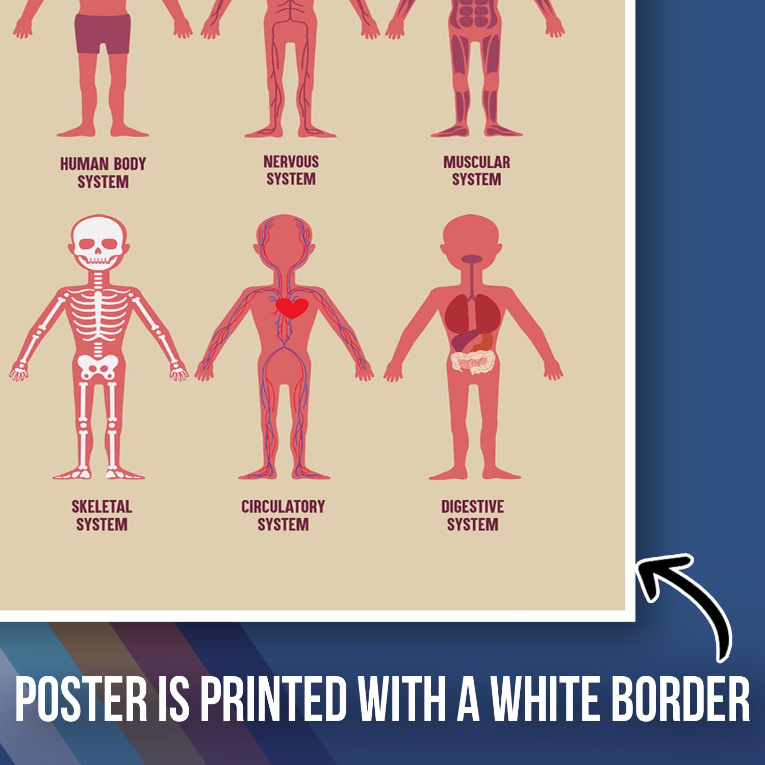 Introducing Our Human Body Systems Diagram Poster: A 12×18-Inch Masterpiece on 100lb Premium Gloss Paper, Crafted and Printed in the USA! Elevate your space with this exquisite 12×18-inch poster meticulously printed on 100lb premium gloss paper. Designed to captivate the eye and ignite the imagination, this stunning piece brings a touch of elegance and sophistication to any room. Experience the unparalleled quality of American craftsmanship as this Educational Learning Kids Classroom School Poster poster comes to life through state-of-the-art printing techniques right here in the USA. The rich and vibrant colors leap off the page, creating a visual feast that demands attention and admiration. Whether you’re seeking to adorn your home, office, dorm, mancave, gaming room or creative space, this poster is a testament to both artistry and precision. Add a touch of class and style to your surroundings with a poster. Elevate your decor today with this 12×18-inch masterpiece on 100lb premium gloss paper, proudly crafted and printed in the USA. Included: 1x Human Body Systems Diagram 12 x 18 Unframed Poster
