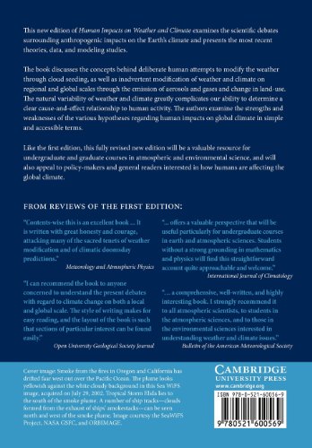 This 2007 edition of Human Impacts on Weather and Climate examines the scientific and political debates surrounding anthropogenic impacts on the Earth’s climate and presents the most recent theories, data and modeling studies. The book discusses the concepts behind deliberate human attempts to modify the weather through cloud seeding, as well as inadvertent modification of weather and climate on the regional scale. The natural variability of weather and climate greatly complicates our ability to determine a clear cause-and-effect relationship to human activity. The authors describe the basic theories and critique them in simple and accessible terms. This fully revised edition will be a valuable resource for undergraduate and graduate courses in atmospheric and environmental science, and will also appeal to policy makers and general readers interested in how humans are affecting the global climate.